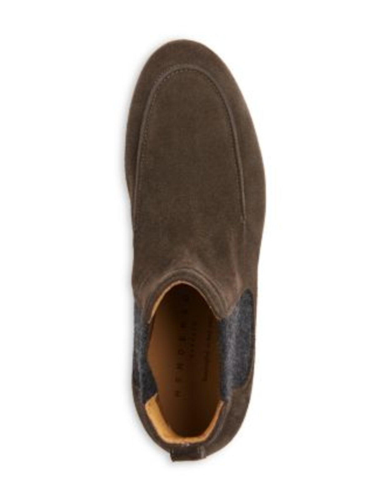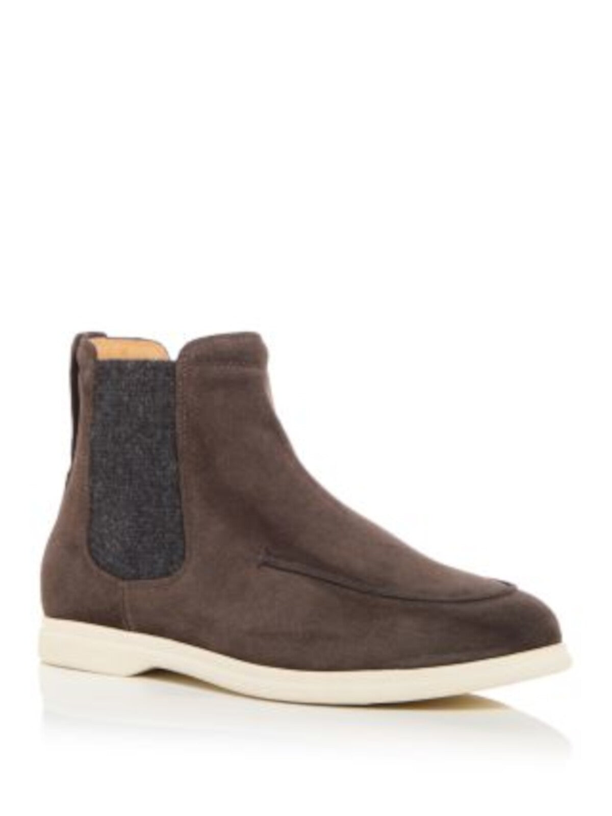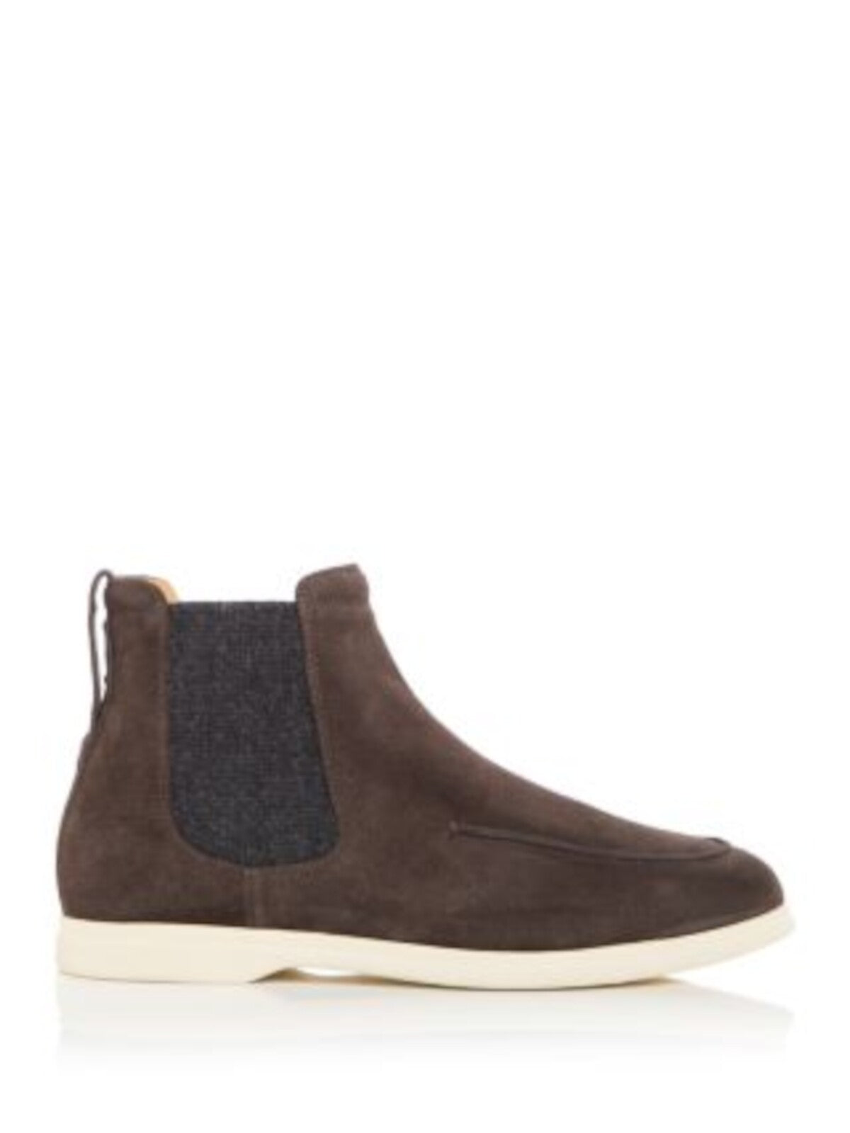 Mens Brown Heel Pull-Tab Apron Toe Padded Goring Faedo Round Toe Suede Chelsea Boot