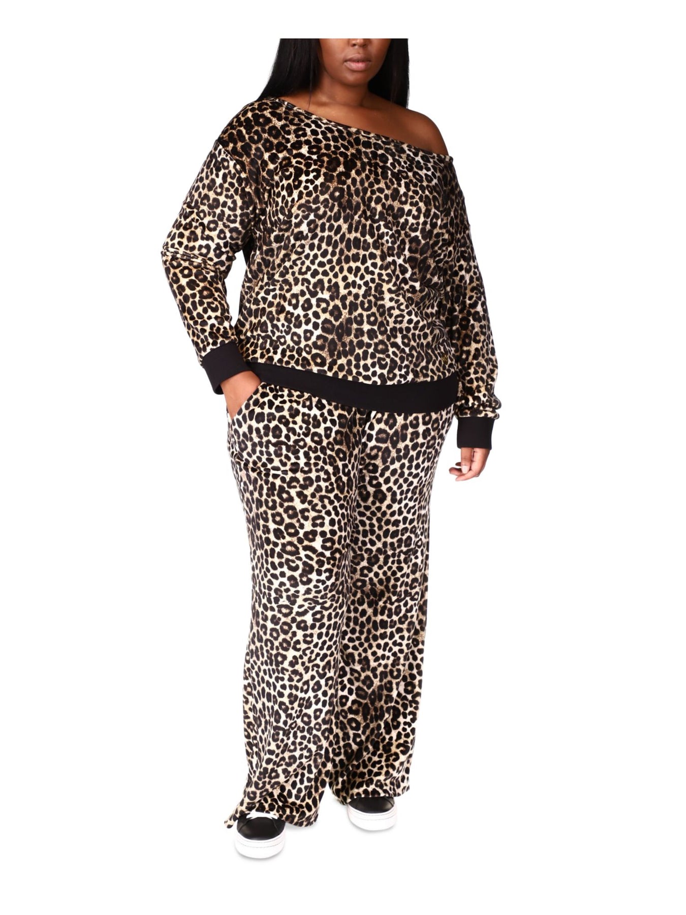 MICHAEL MICHAEL KORS Womens Beige Animal Print Long Sleeve Asymmetrical Neckline Top Plus 4X