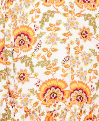 TEEZE ME Womens Ivory Stretch Zippered Tie Ruffled Floral Spaghetti Strap Sweetheart Neckline Short Party Fit + Flare Dress 5\6