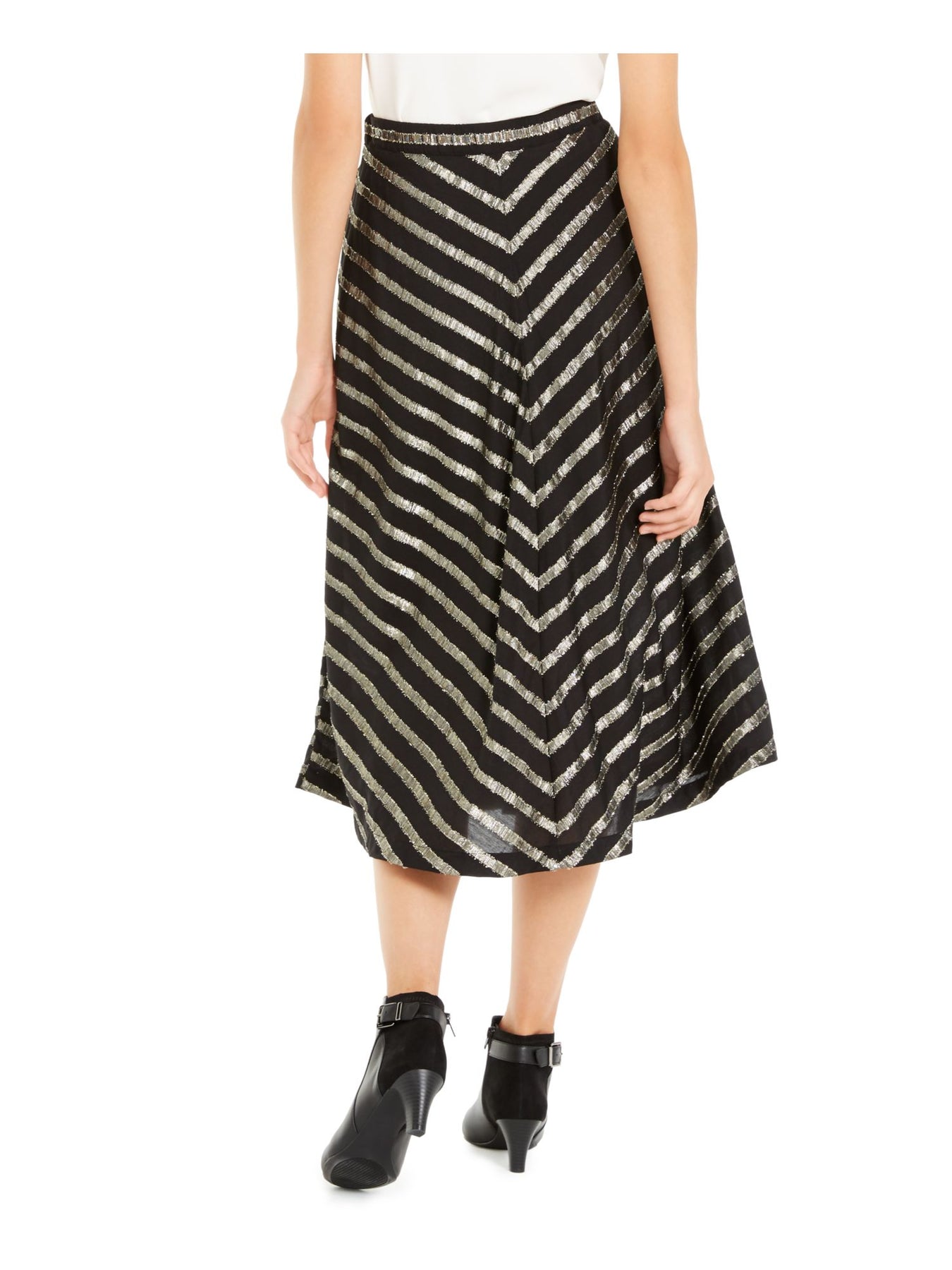 ALFANI Womens Sequined Striped Below The Knee Party Fit + Flare Skirt