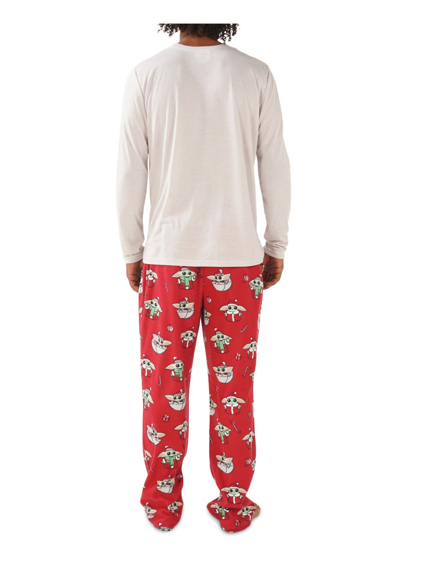 MUNKI MUNKI Mens Red Graphic Top Elastic Band Long Sleeve Straight leg Pants Pajamas M