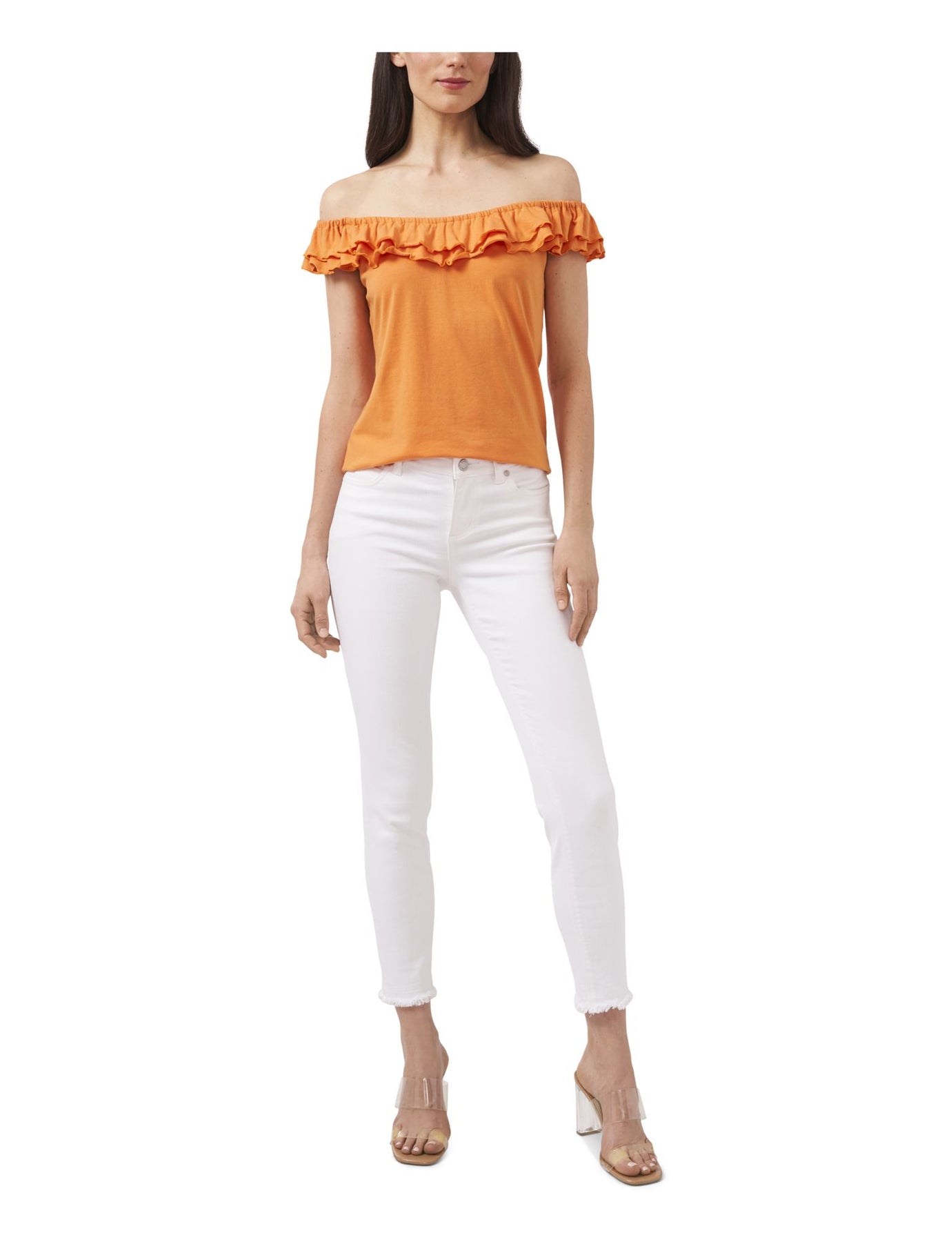 RILEY&RAE Womens Orange Stretch Ruffled Flutter Sleeve Off Shoulder Top S