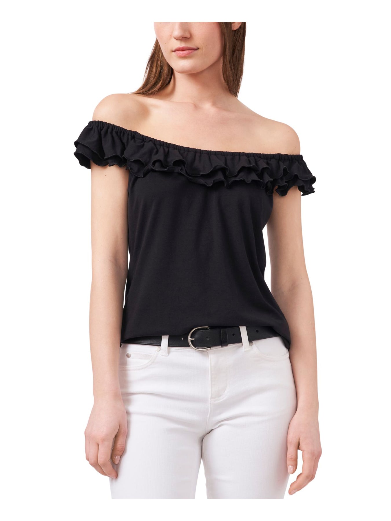 RILEY&RAE Womens Black Stretch Ruffled Flutter Sleeve Off Shoulder Top S