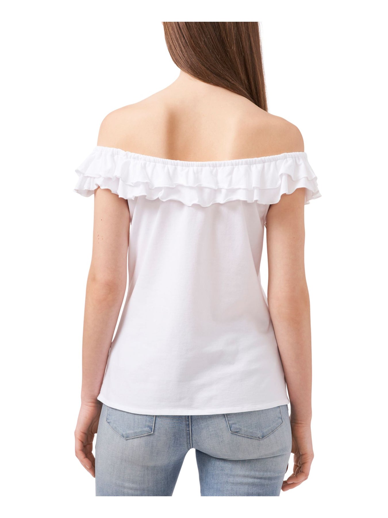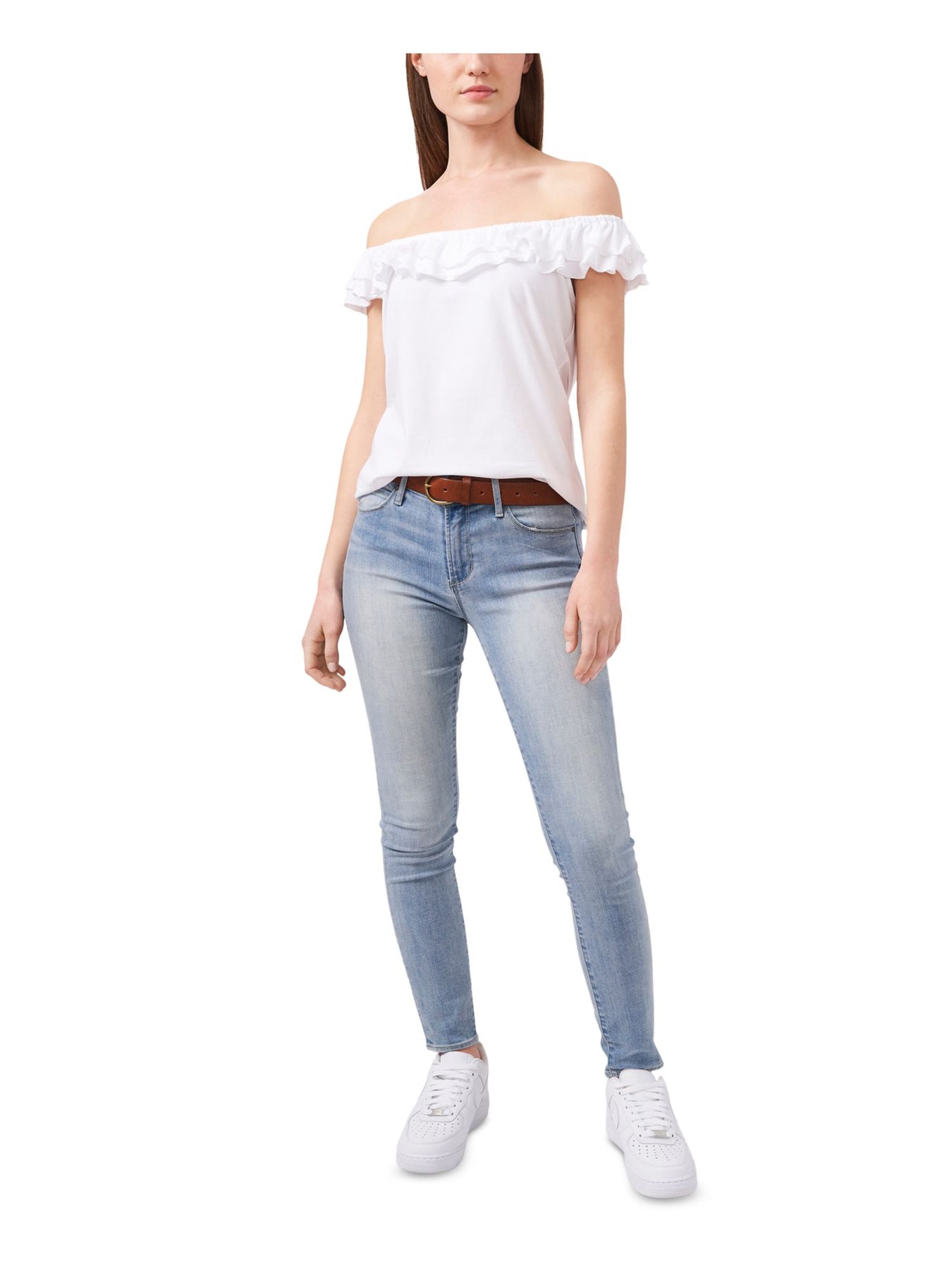RILEY&RAE Womens White Stretch Ruffled Flutter Sleeve Off Shoulder Top M