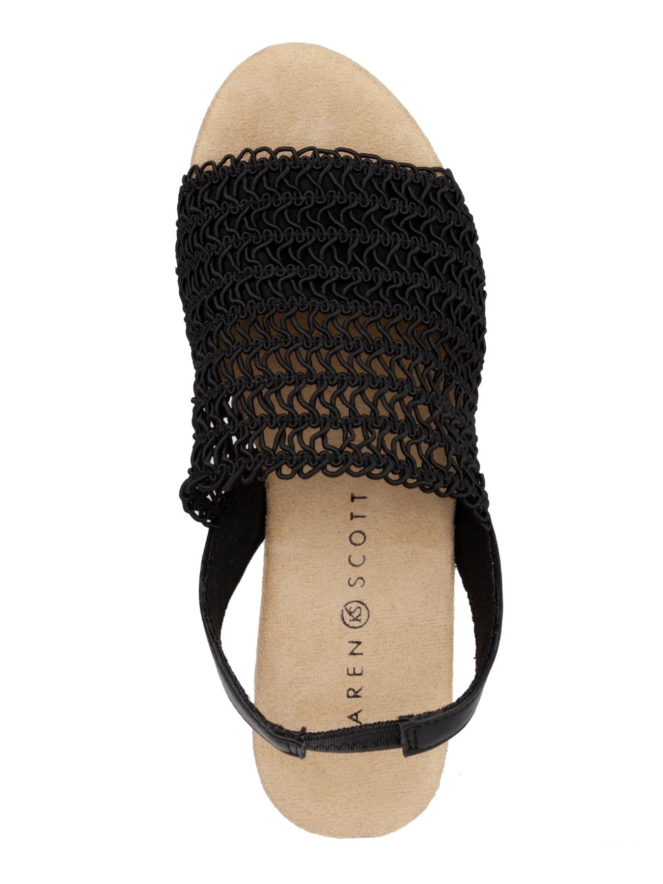 Womens Black Macram� Cork Look Wedge Macram� Vamp Cushioned Meriamm Almond Toe Wedge Slip On Slingback Sandal M