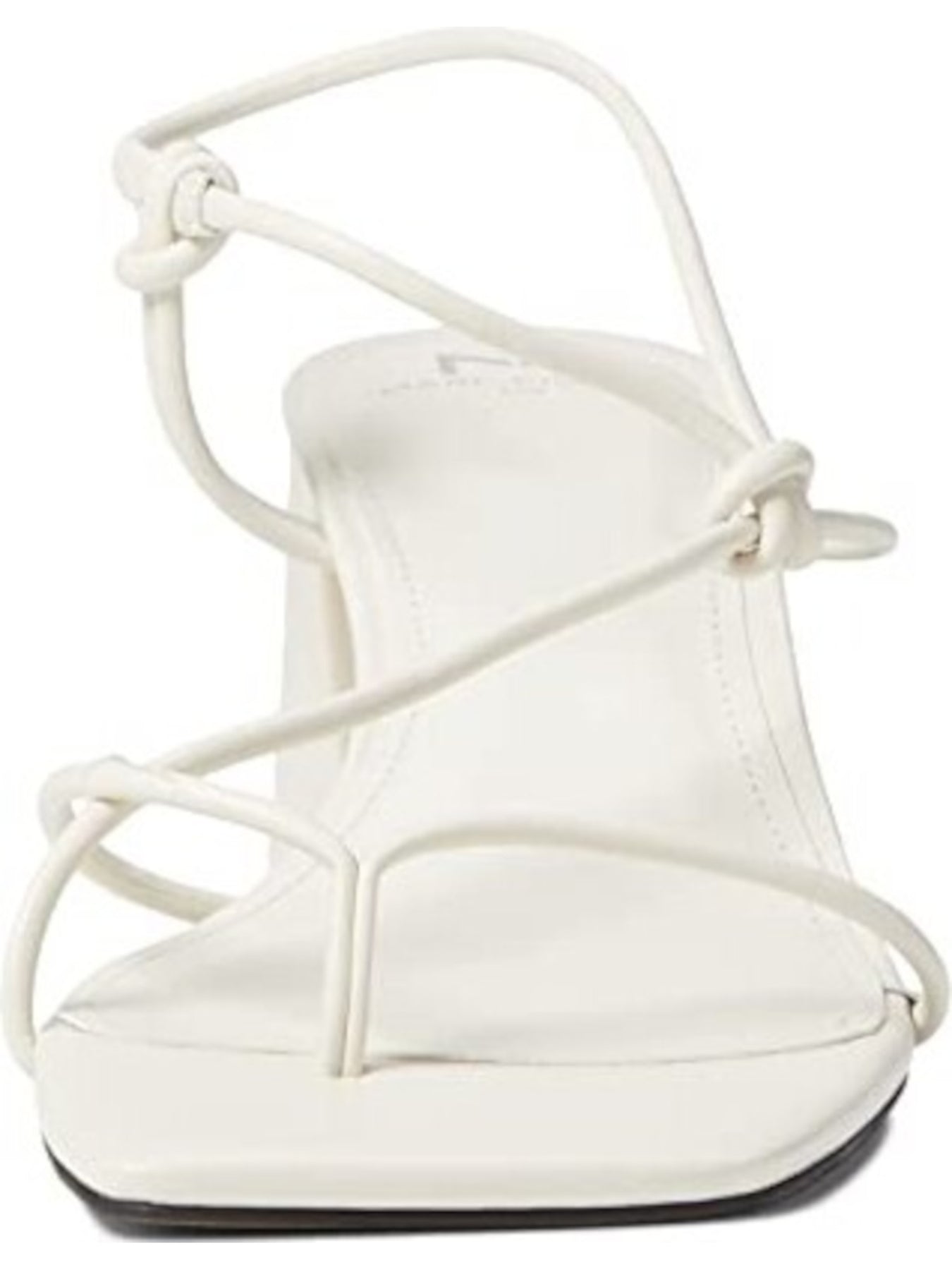 Womens Ivory Padded Strappy Asymmetrical Chiara Square Toe Block Heel Slip On Leather Dress Slingback Sandal M