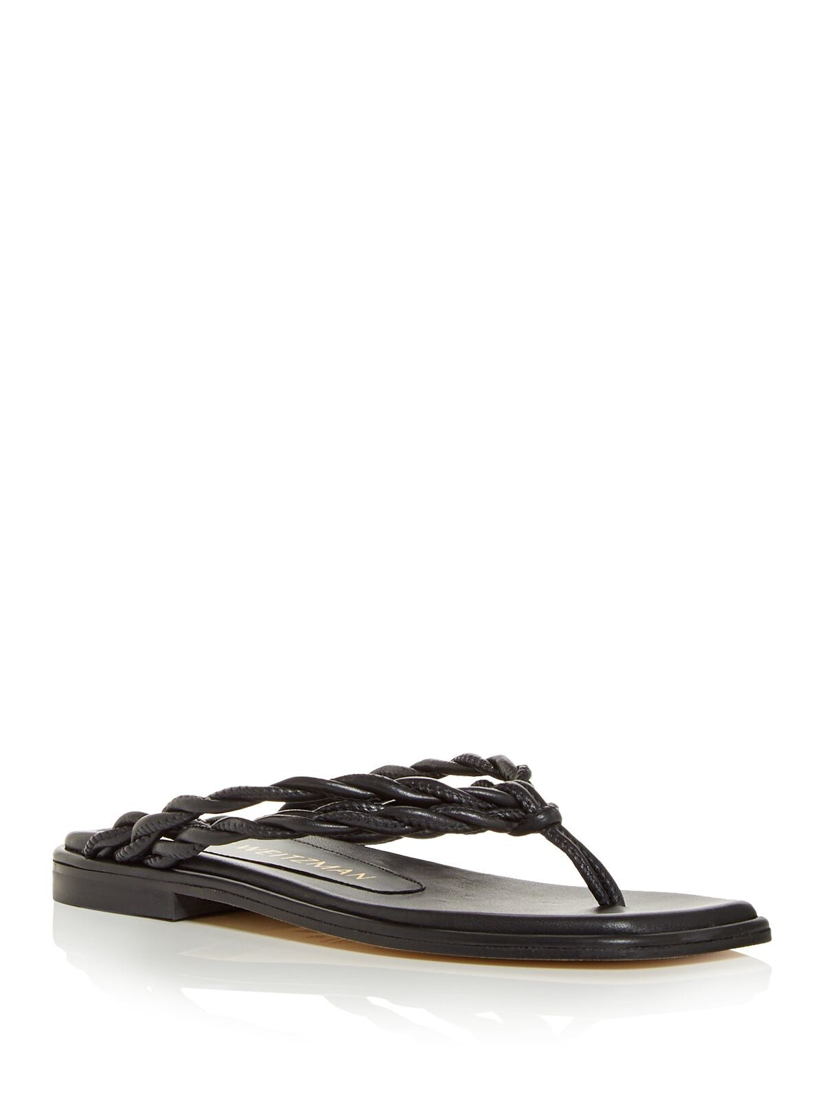 STUART WEITZMAN Womens Black Padded Braided Calypso Square Toe Block Heel Slip On Leather Thong Sandals Shoes 8 B