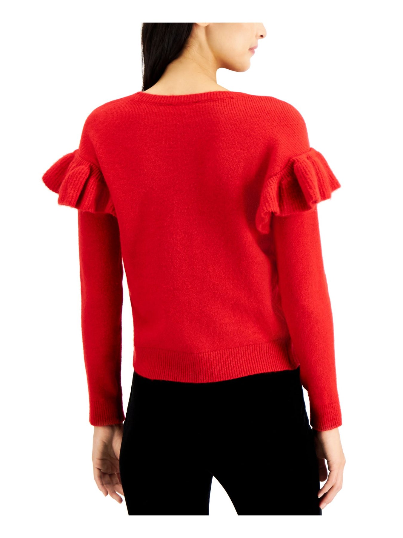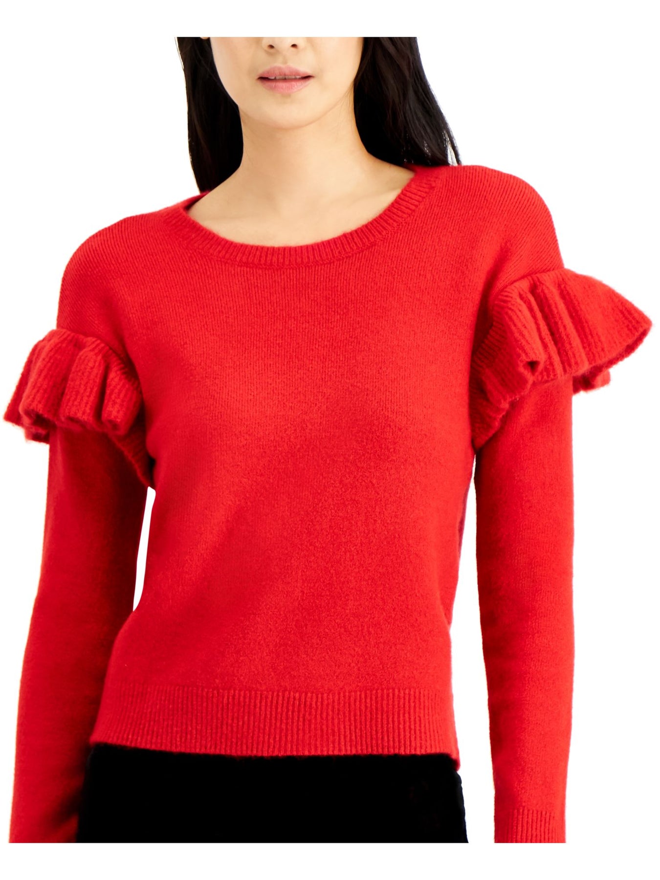 INC Womens Red Ruffled Long Sleeve Crew Neck Sweater S