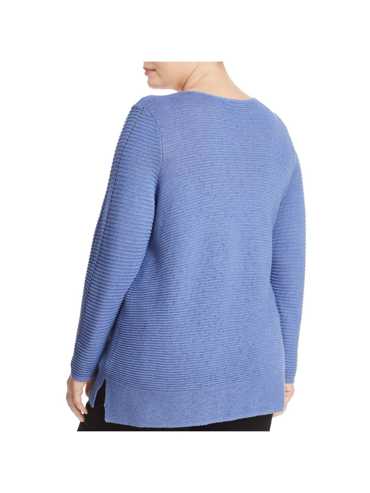 NIC+ZOE Womens Blue Knit Slitted Ribbed Asymmetrical Faux-wrap Front Long Sleeve Collarless Faux Wrap Sweater Plus 2X
