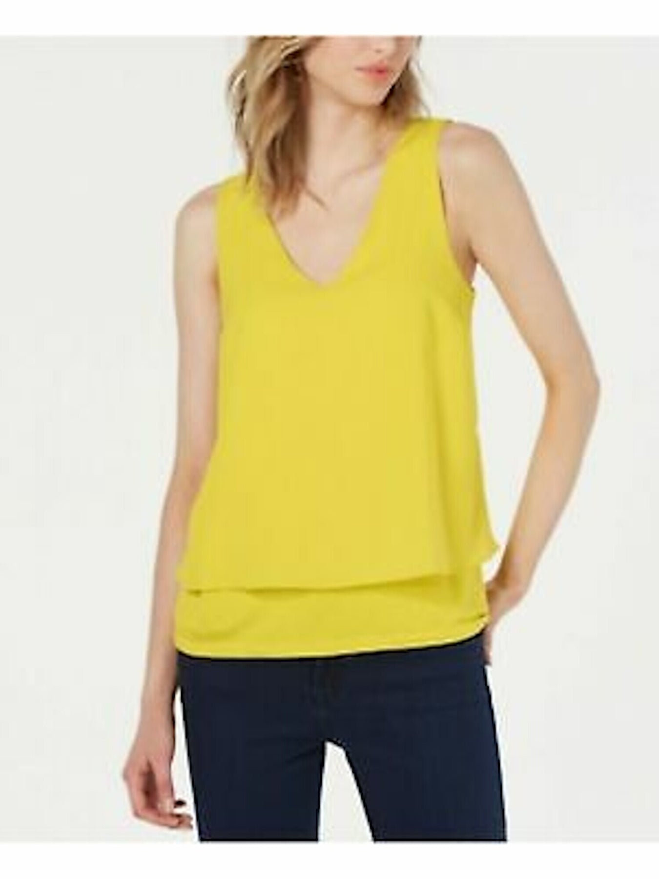 BAR III Womens Yellow Layered Look Sleeveless V Neck Top XS