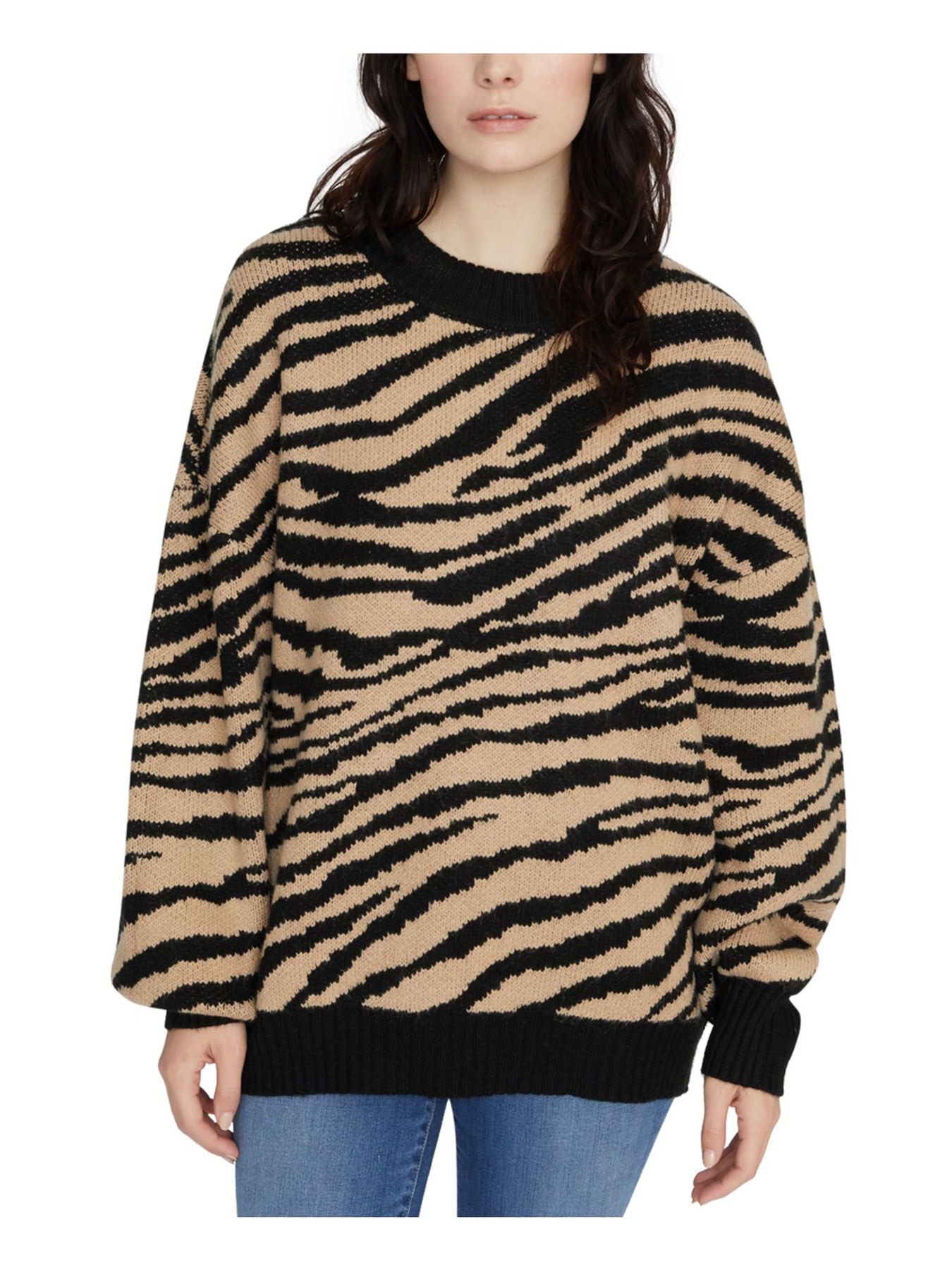 SANCTUARY Womens Animal Print Long Sleeve Crew Neck Sweater
