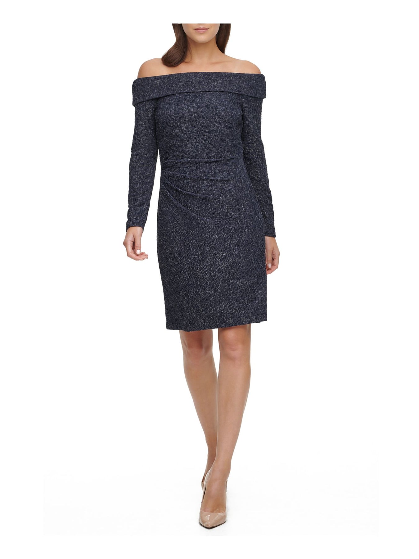 Womens Gray Glitter Textured Off Shoulder Above The Knee Party Sheath Dress