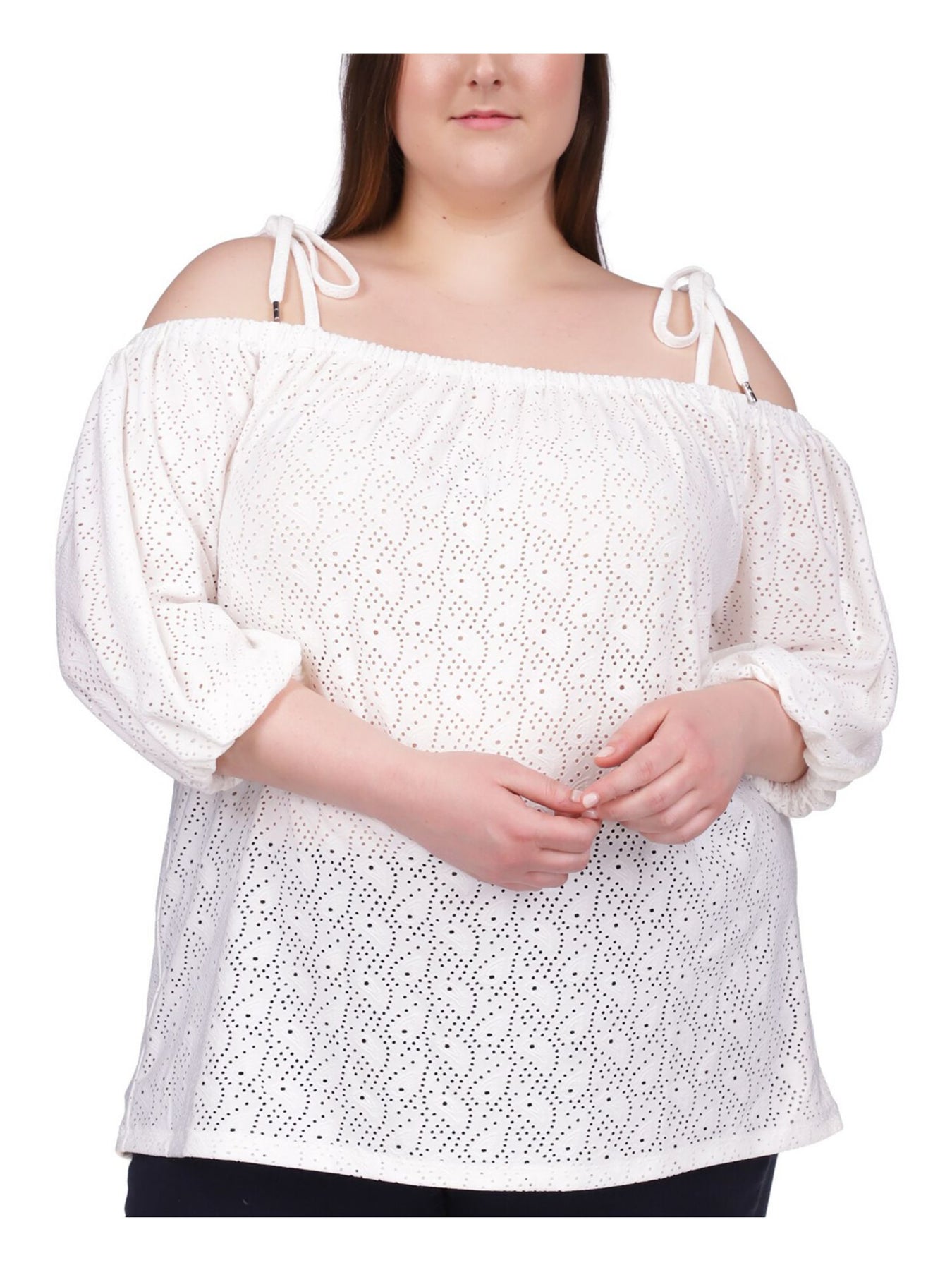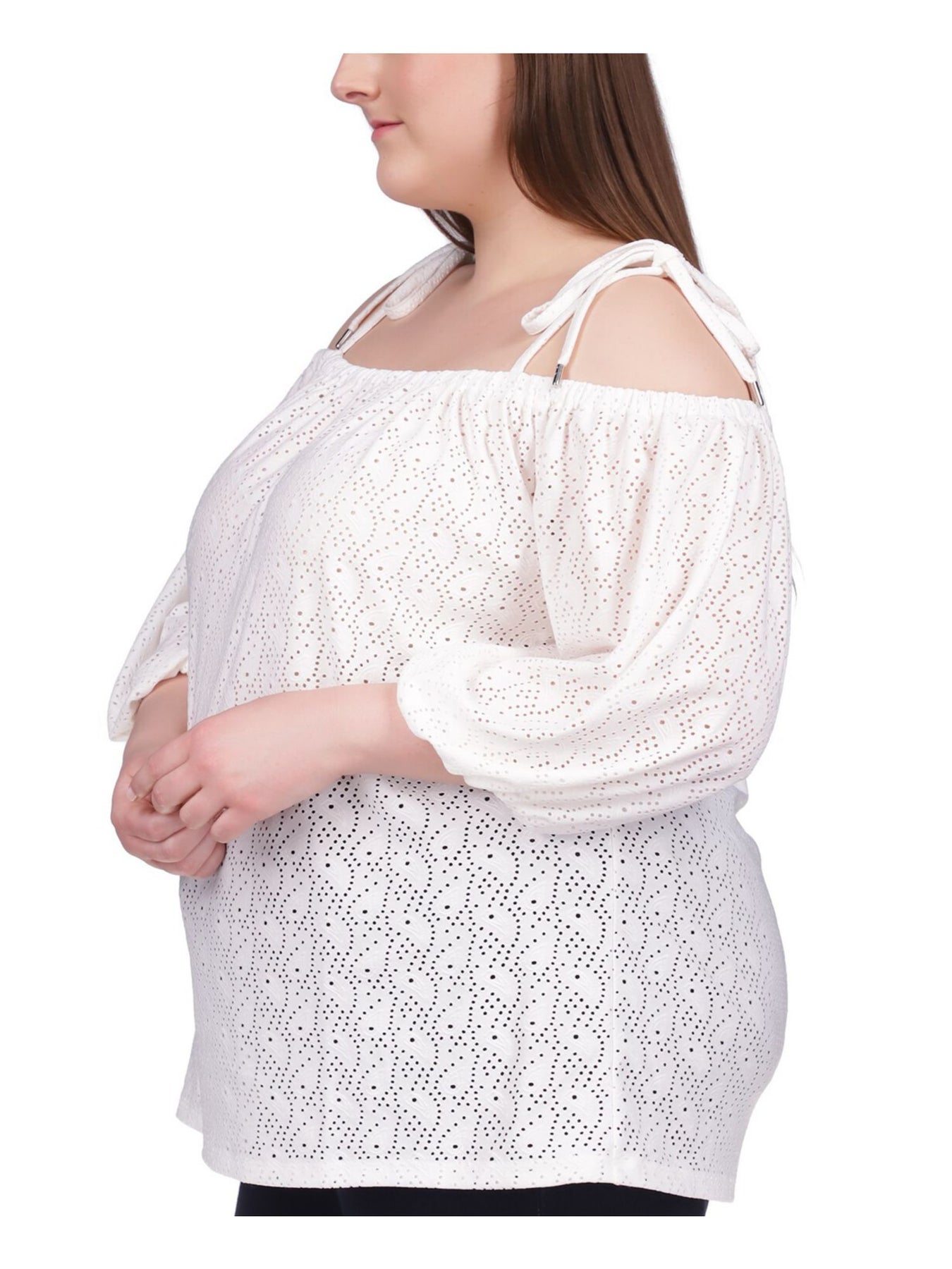 MICHAEL MICHAEL KORS Womens White Eyelet Sheer Tie Straps 3/4 Sleeve Off Shoulder Top Plus 3X
