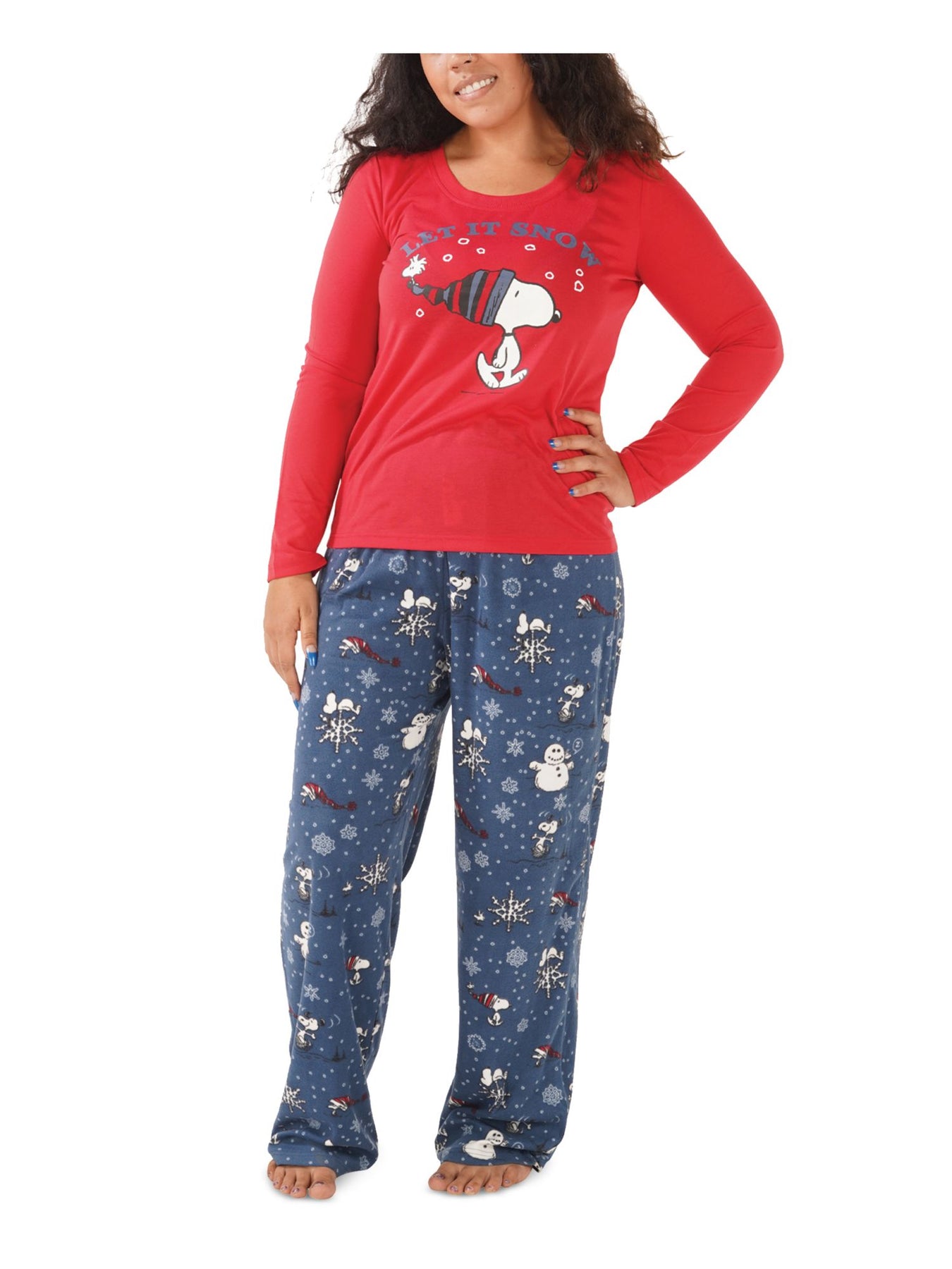 Navy Let It Snow Graphic Long Sleeve Straight leg Holiday Pajamas