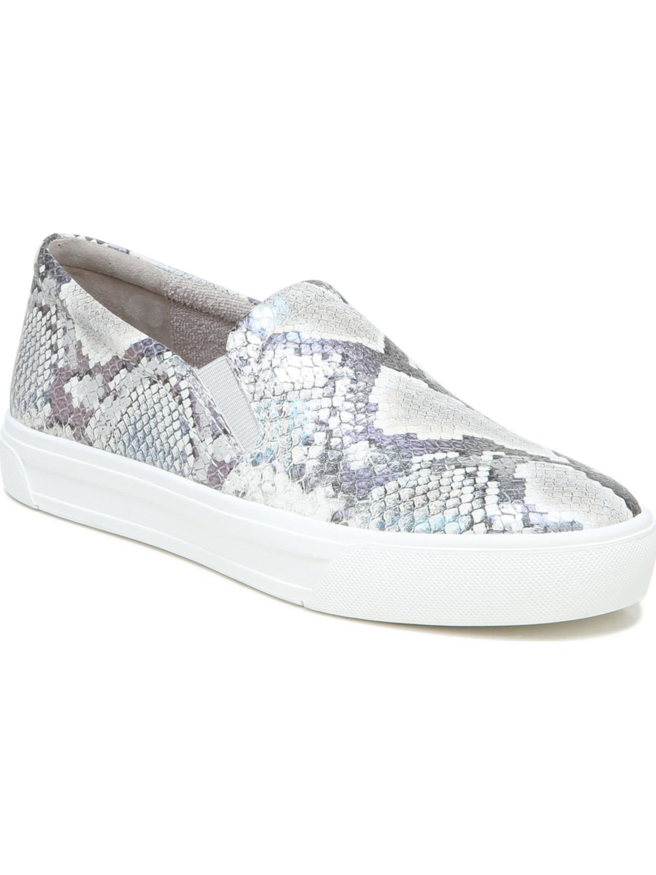 Womens Silver Snake Skin Non-Slip Aileen Round Toe Slip On Leather Athletic Sneakers Shoes M