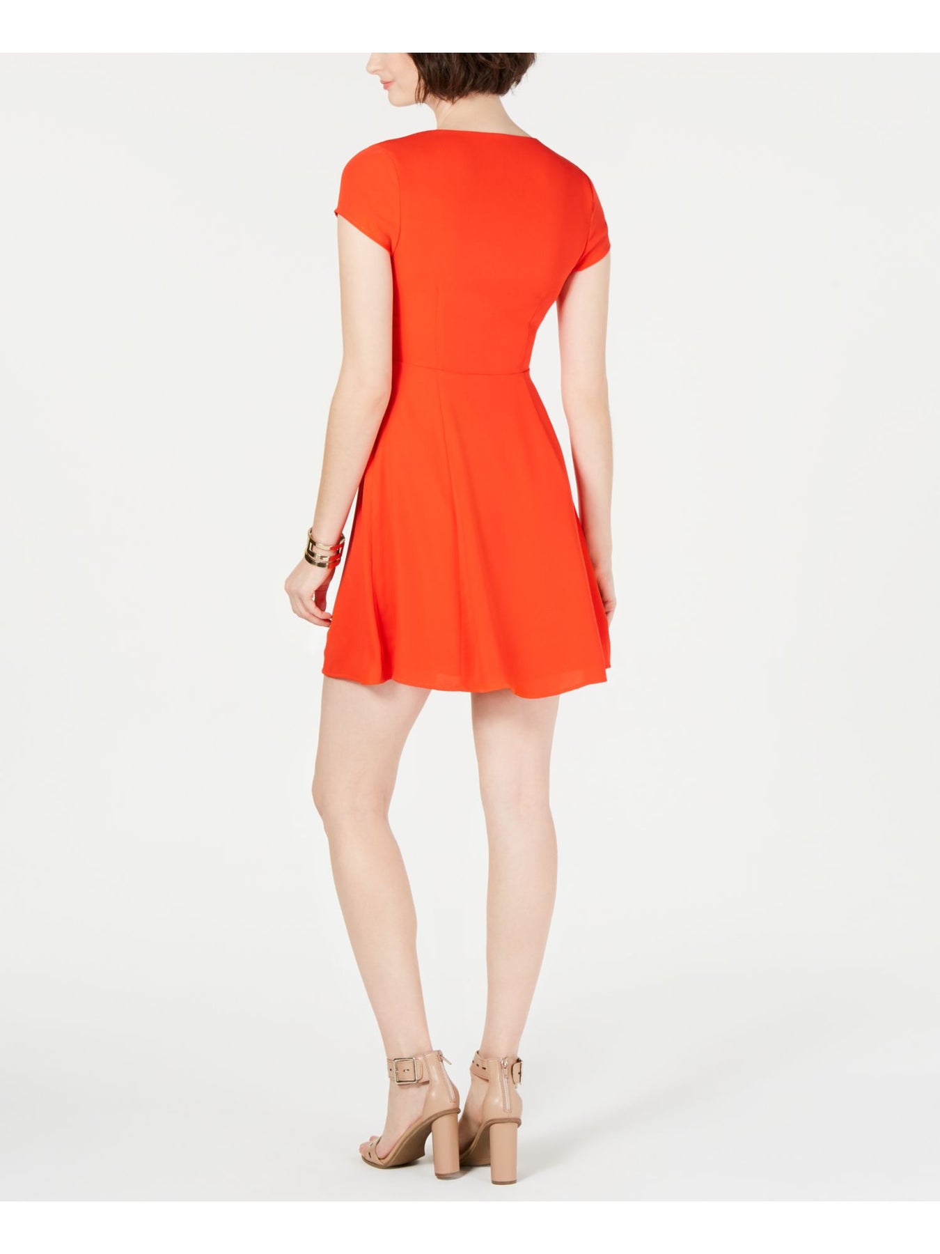 19 COOPER Womens Tie-front Cap Sleeve V Neck Mini Cocktail A-Line Dress