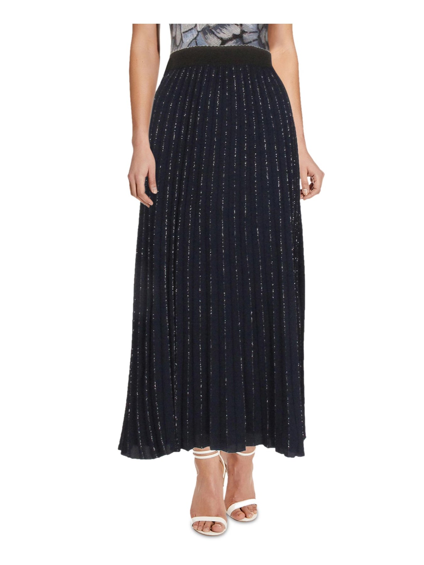 ADRIANNA PAPELL Womens Navy Metallic Pull On Styling Tea-Length Cocktail Pleated Skirt Petites 10P