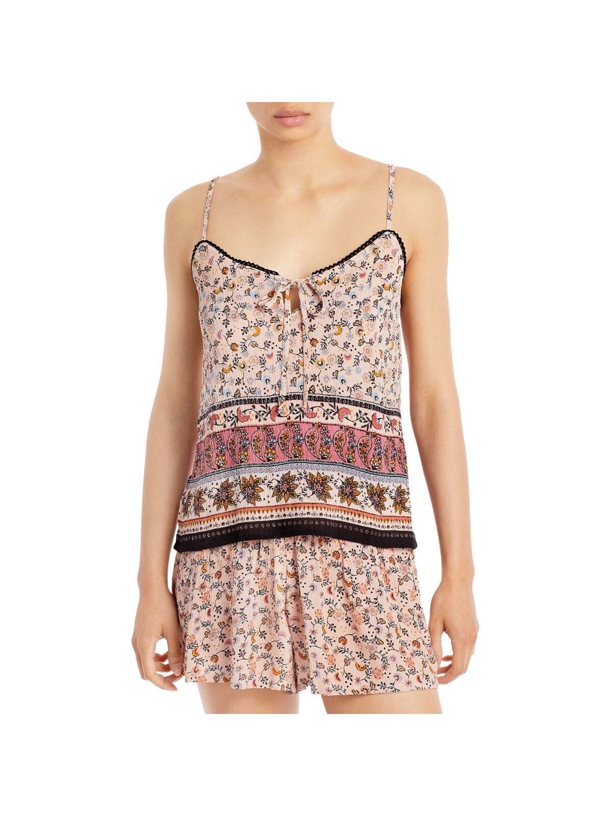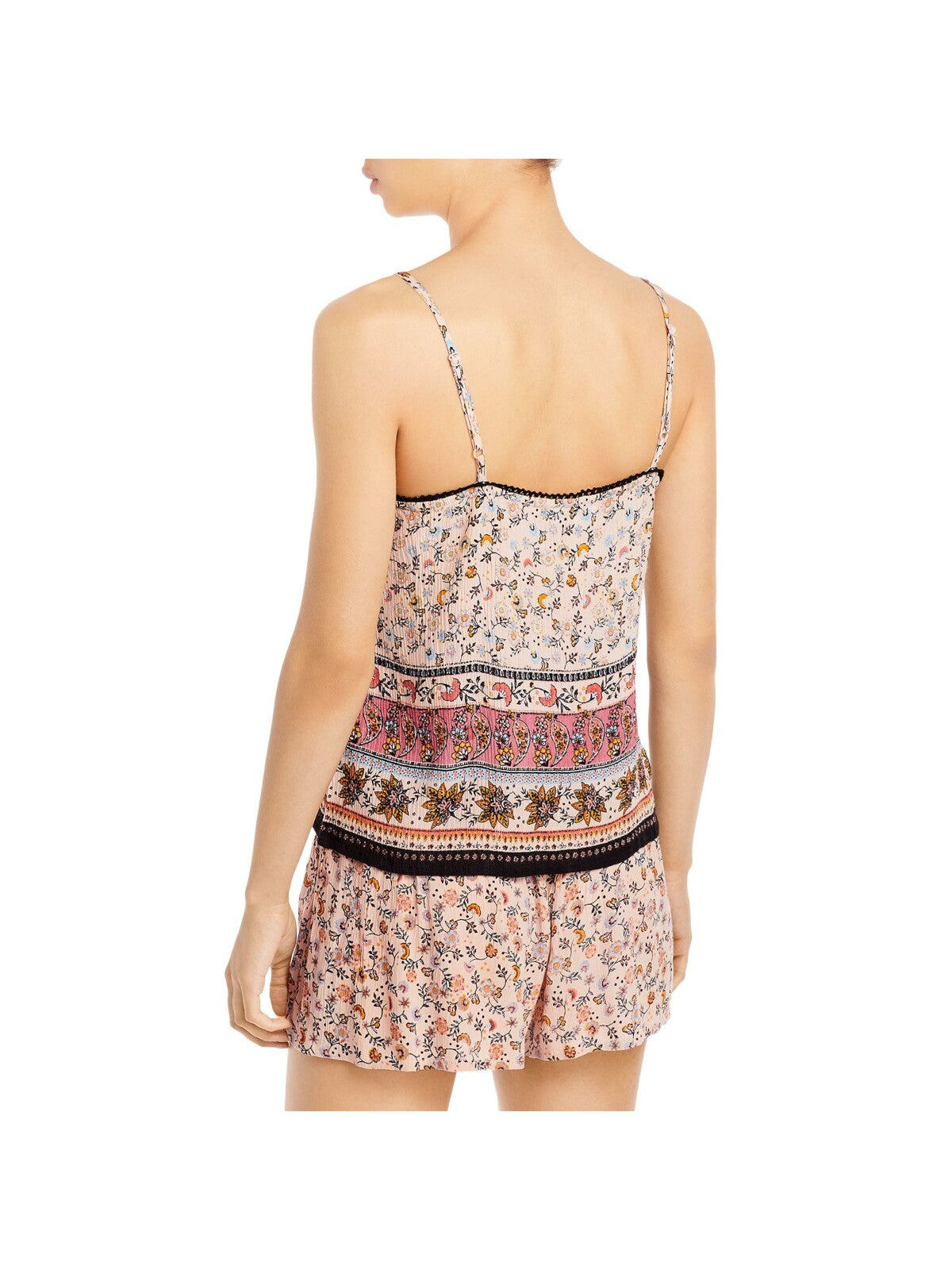 AQUA Womens Top Pink Lace Spaghetti Strap Keyhole Floral Adjustable Straps M