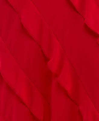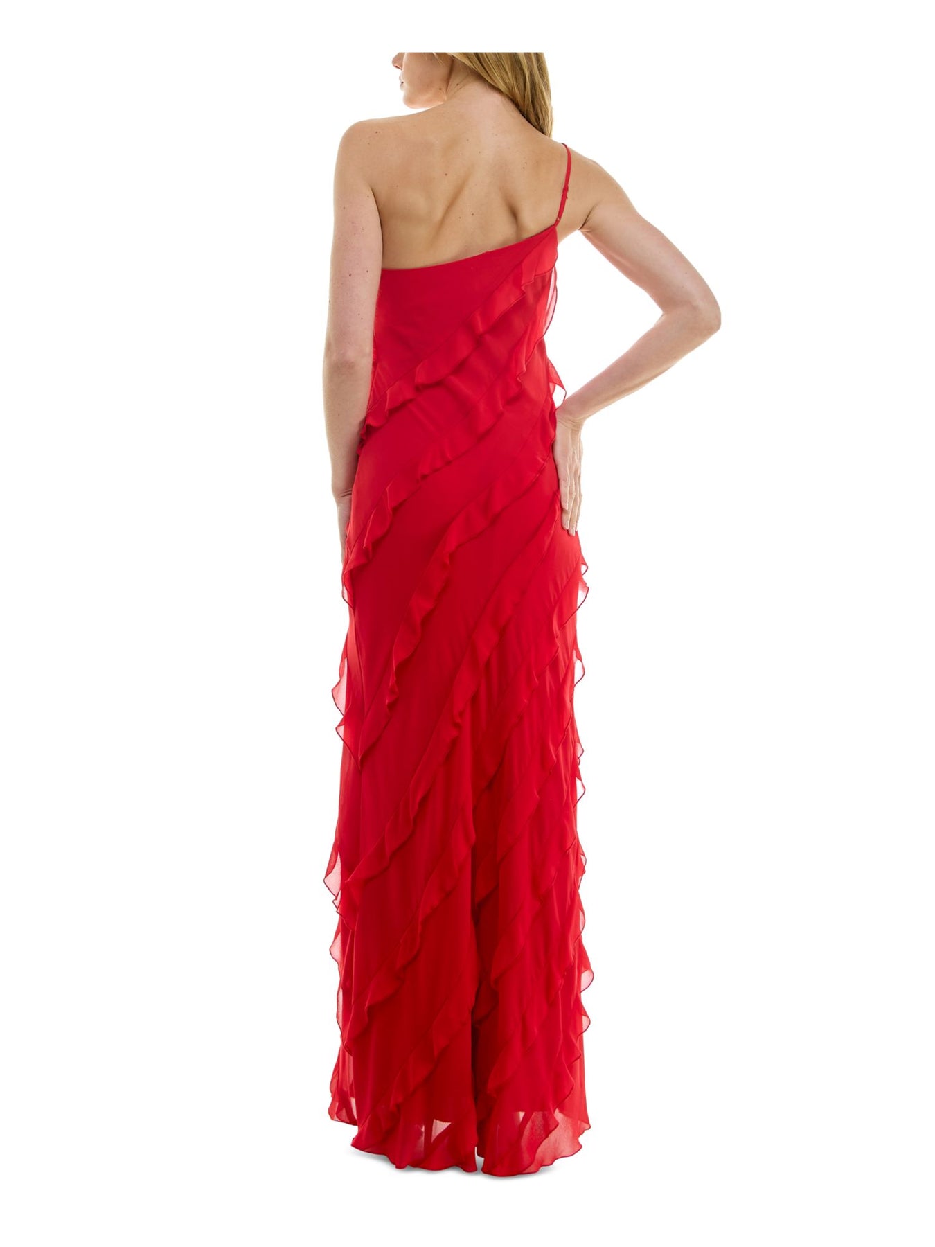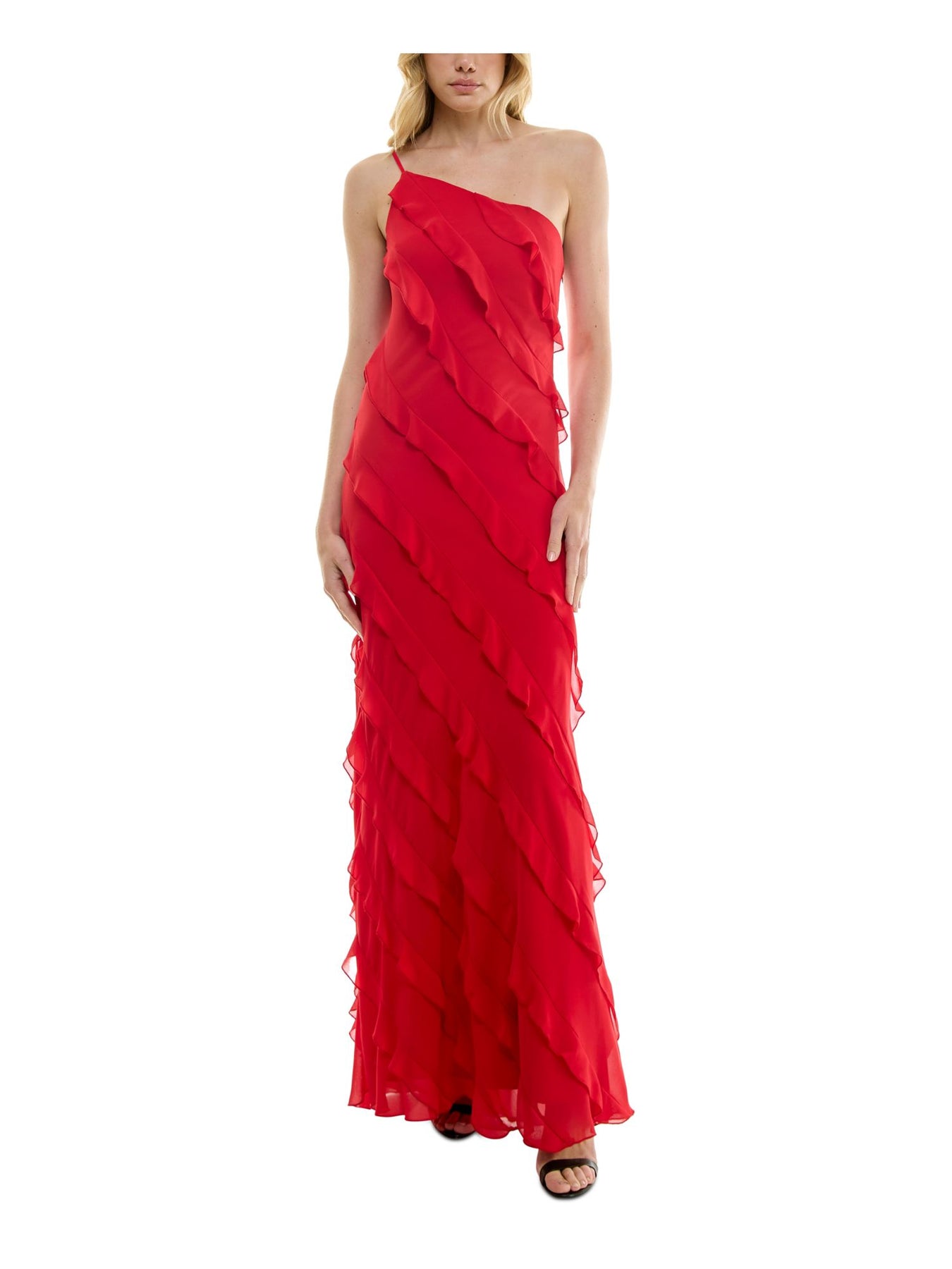 B DARLIN Womens Red Zippered Lined Asymmetric Tiered Ruffles Sleeveless Asymmetrical Neckline Full-Length Party Gown Dress Juniors 13\14