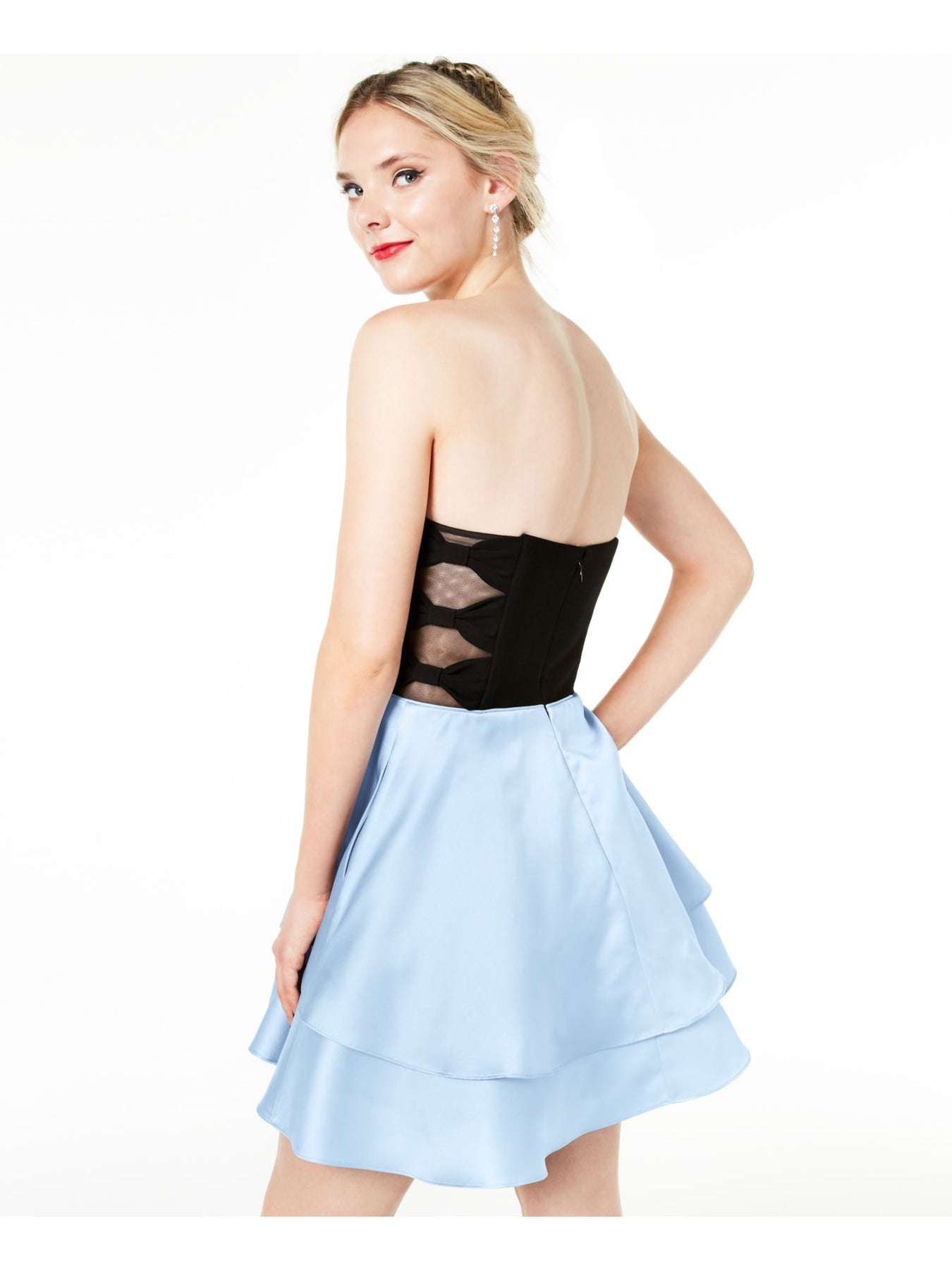 BLONDIE Womens Fit + Flare Mini Dress Light Blue Ruffled Zippered Sleeveless Sweetheart Neckline Party Juniors 7