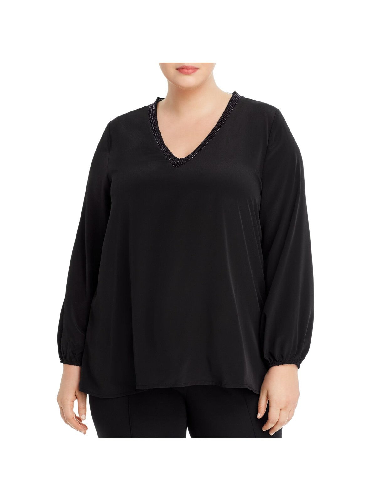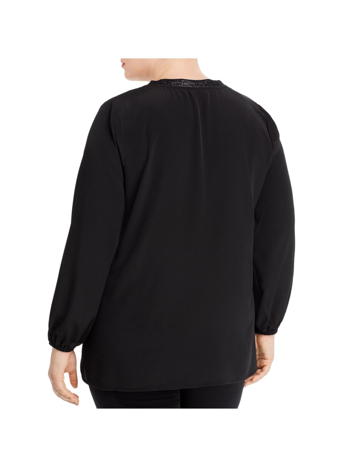 BOBEAU Womens Top Tunic Black Metallic Long Sleeve V Neck Solid Plus 2X