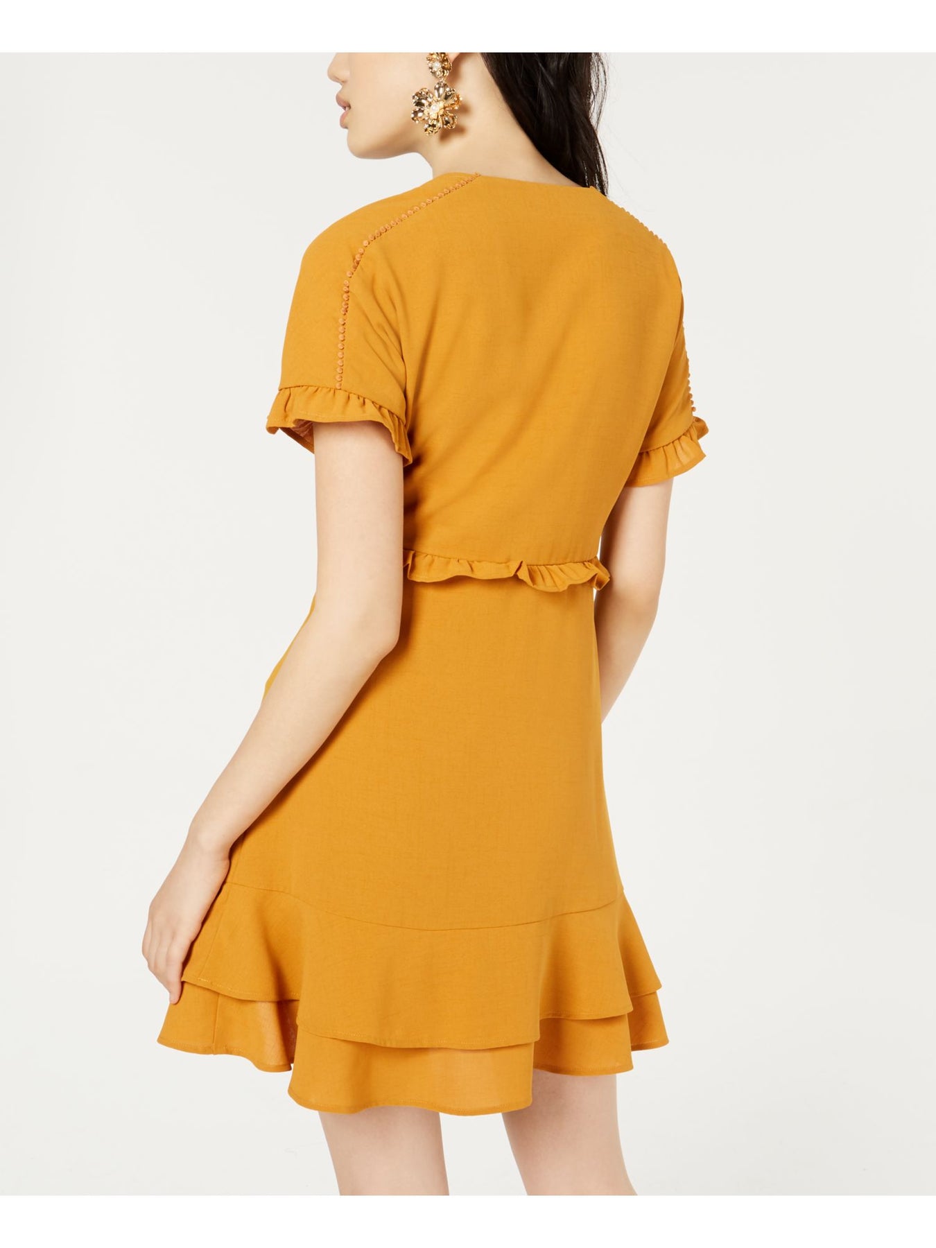 CITY STUDIO Womens Fit + Flare Short Dress Yellow Short Sleeve V Neck Juniors XS