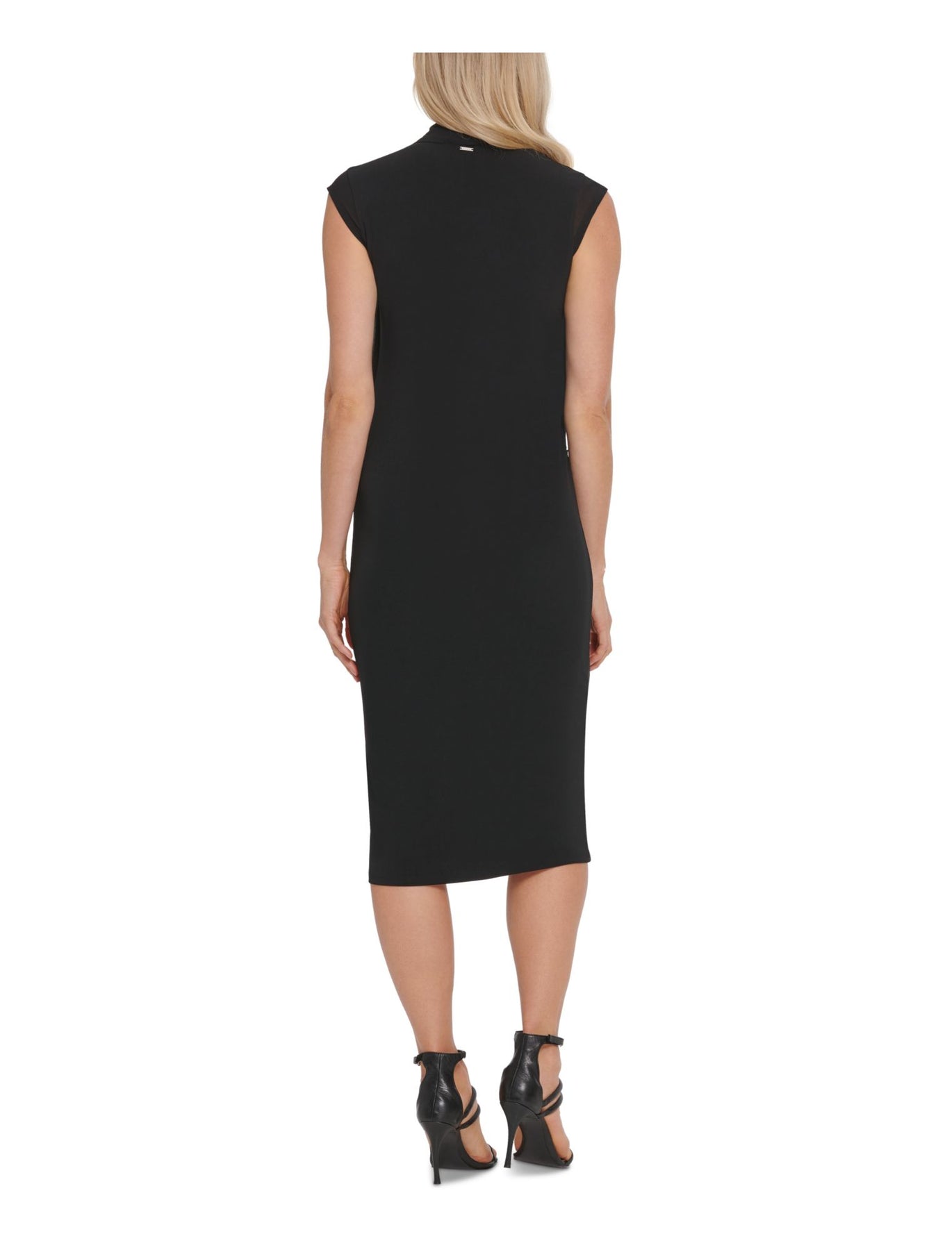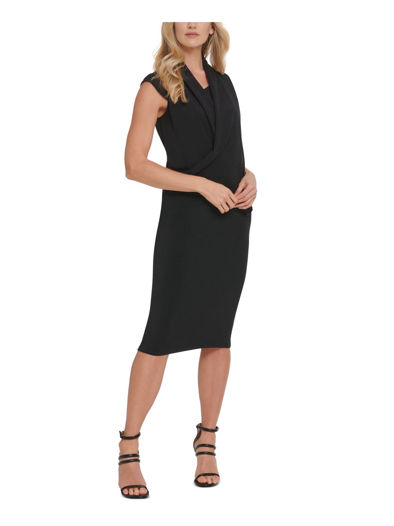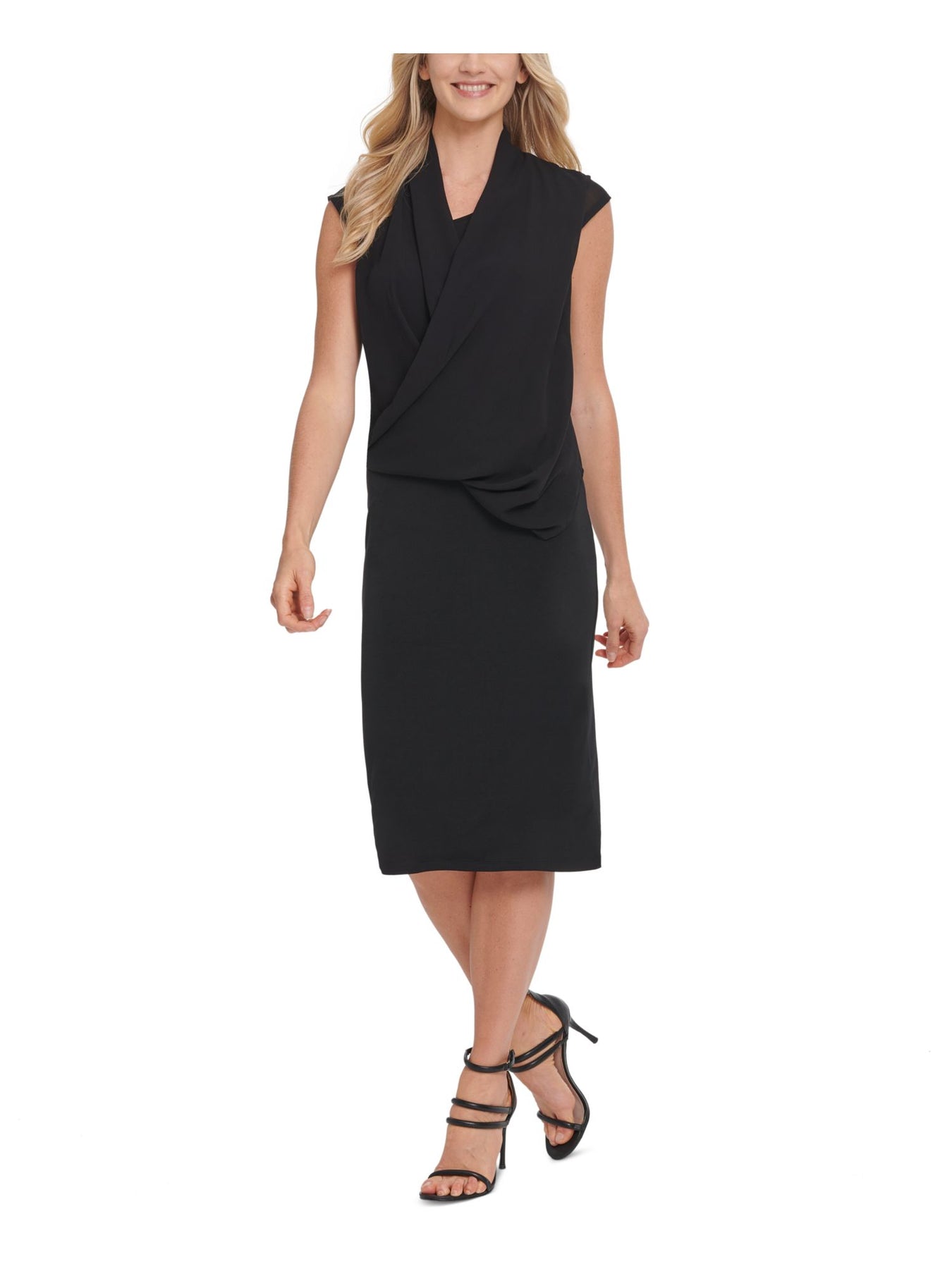 DKNY Womens Wrap Dress Below The Knee Black Cap Sleeve V Neck Solid XS