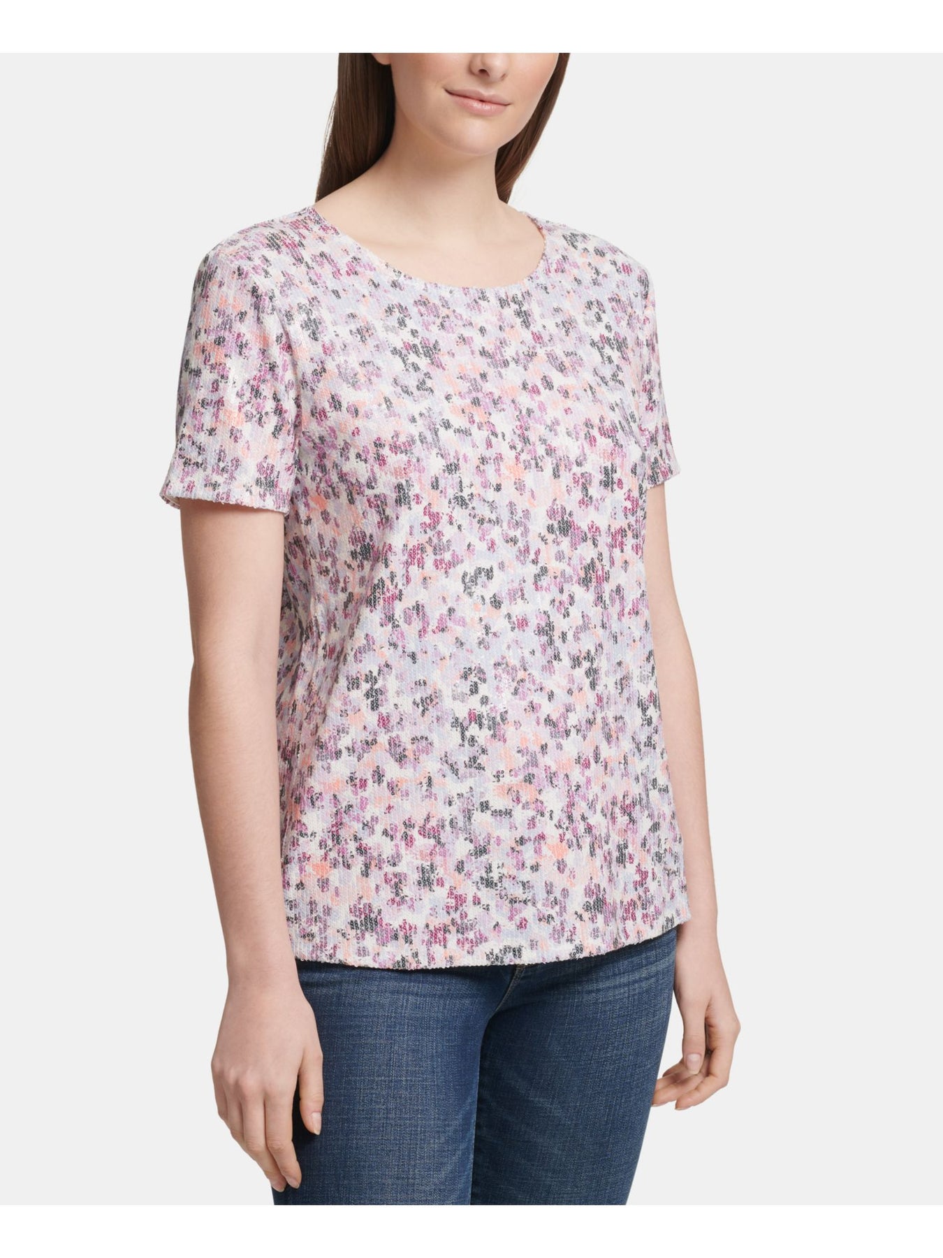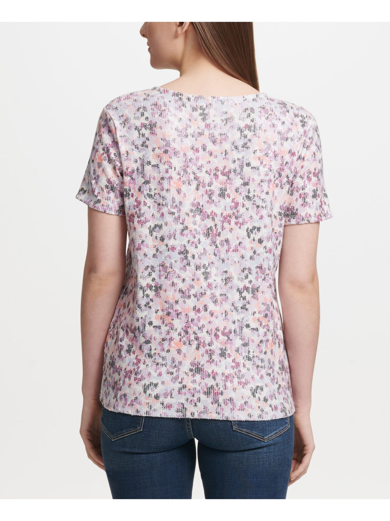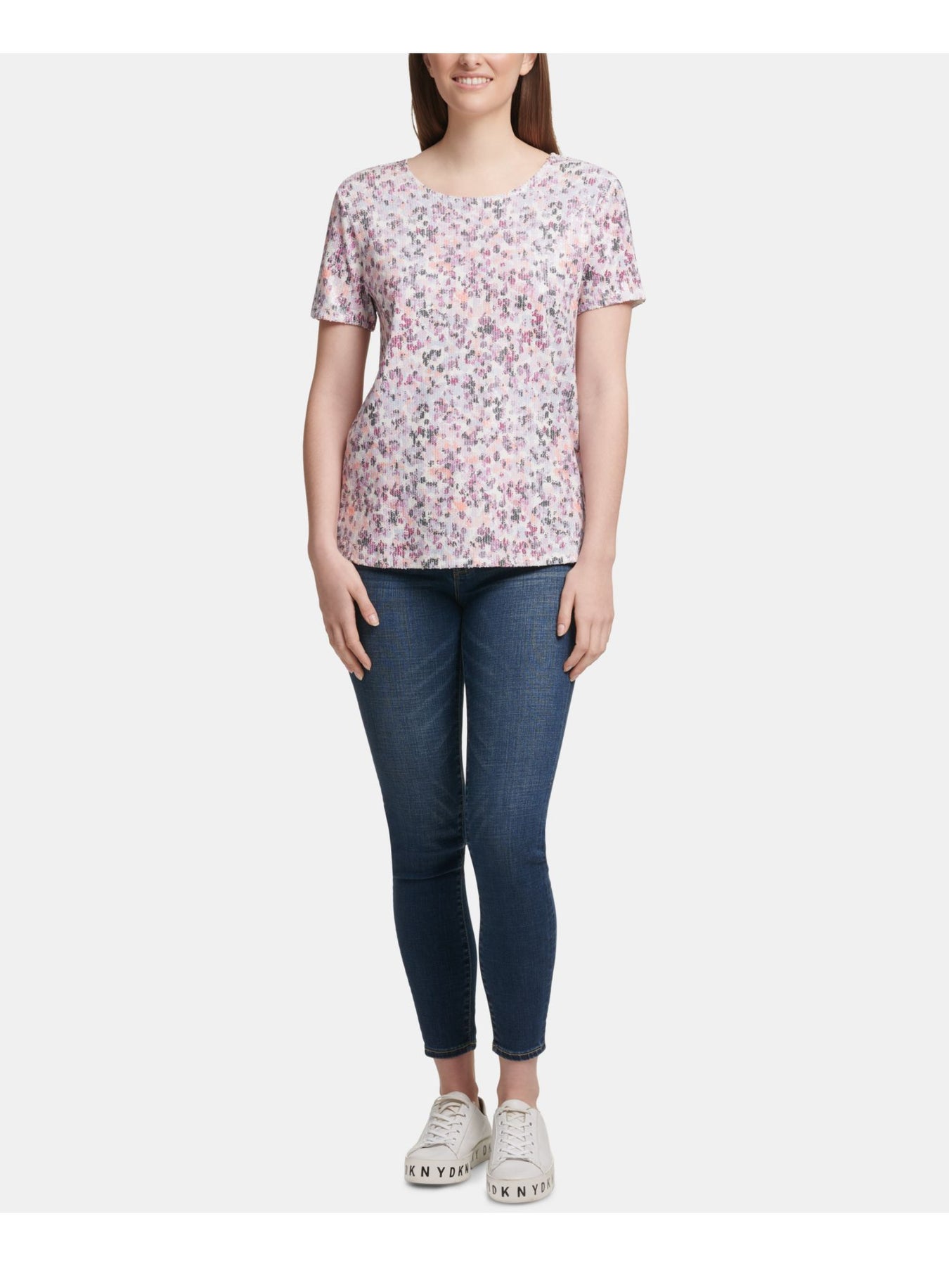 DKNY Womens Printed Short Sleeve Jewel Neck T-Shirt