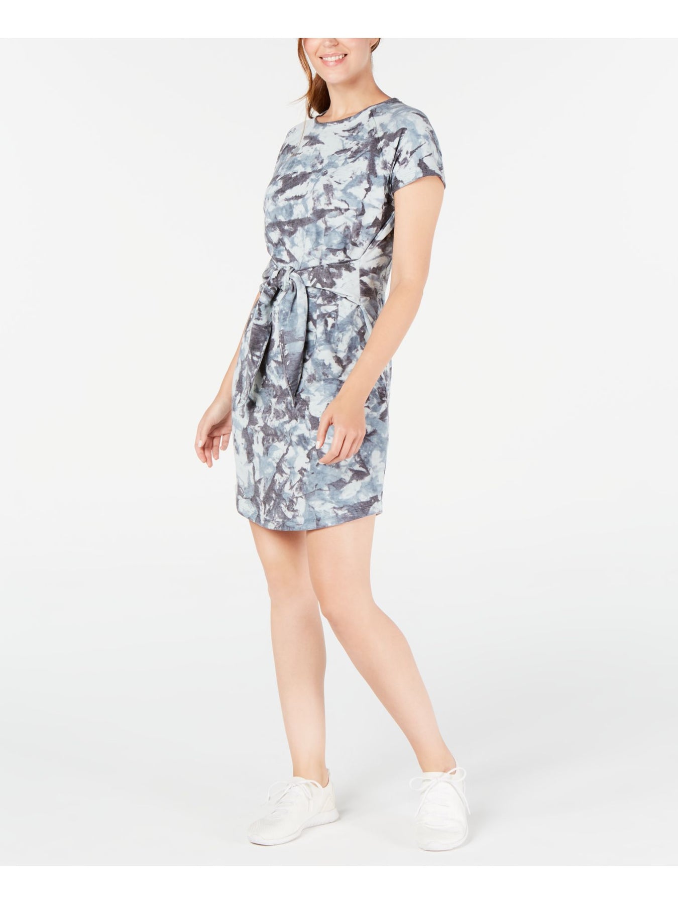 IDEOLOGY Womens Shirt Dress Short Blue Short Sleeve Crew Neck Tie Dye S