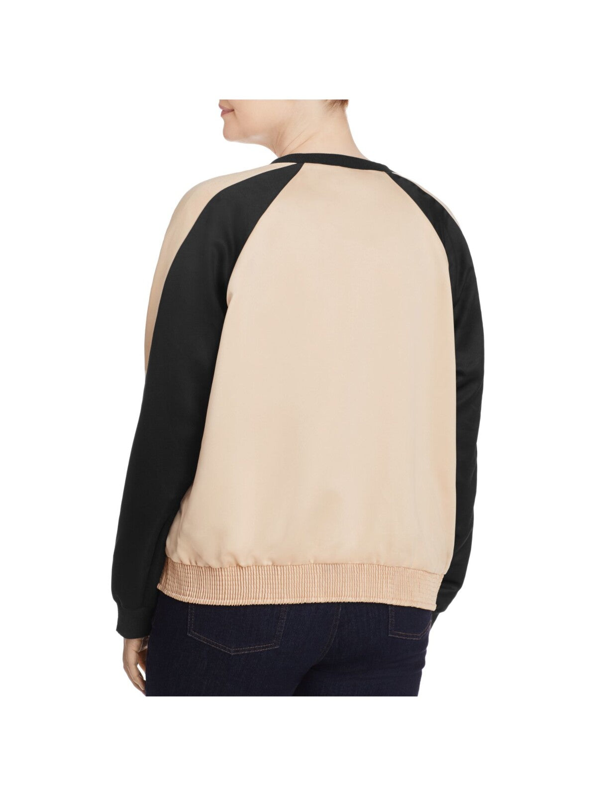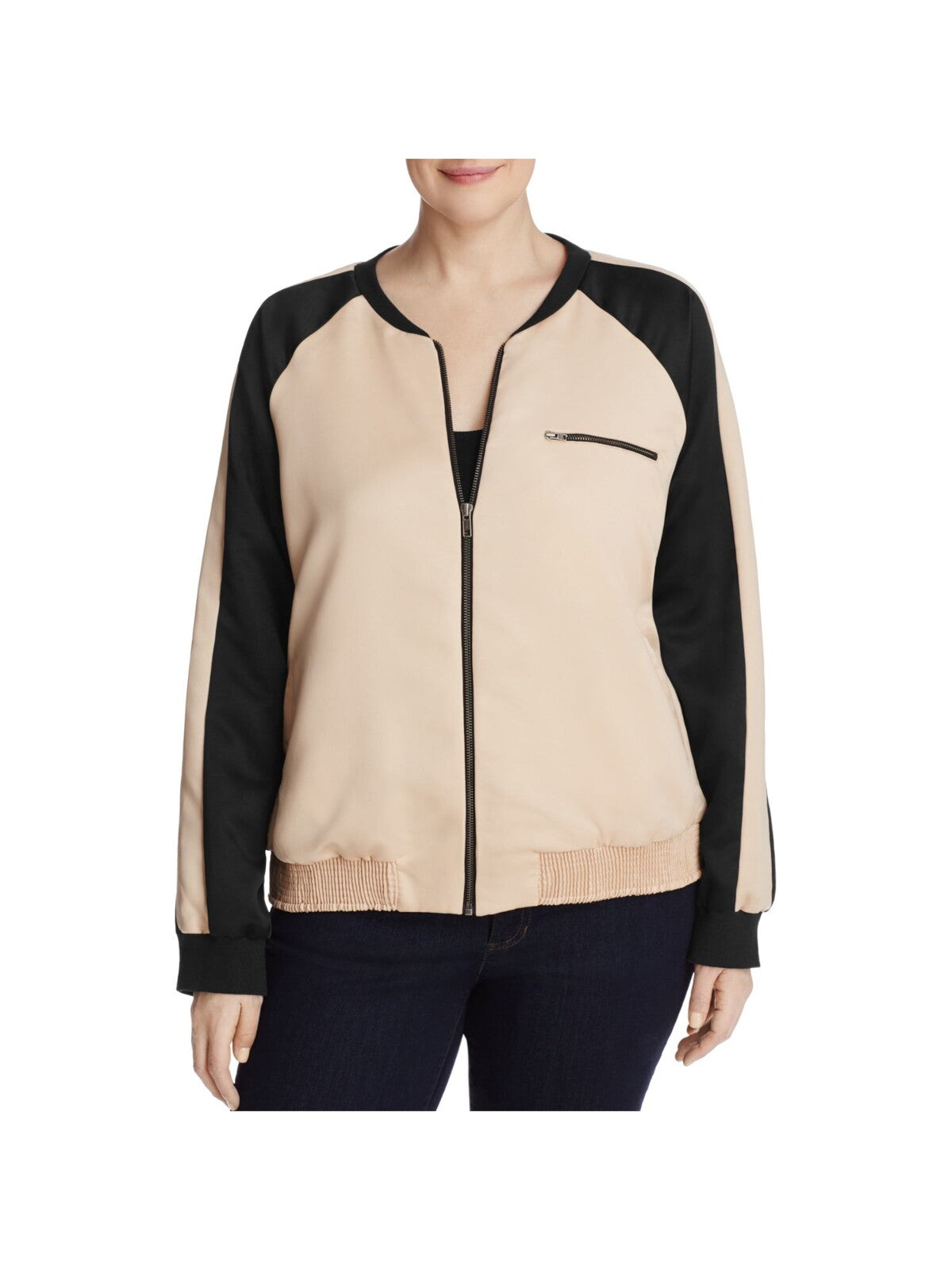 JUNAROSE Womens Jacket Bomber Beige Zippered Pocketed Color Block Smocked Waist 0X
