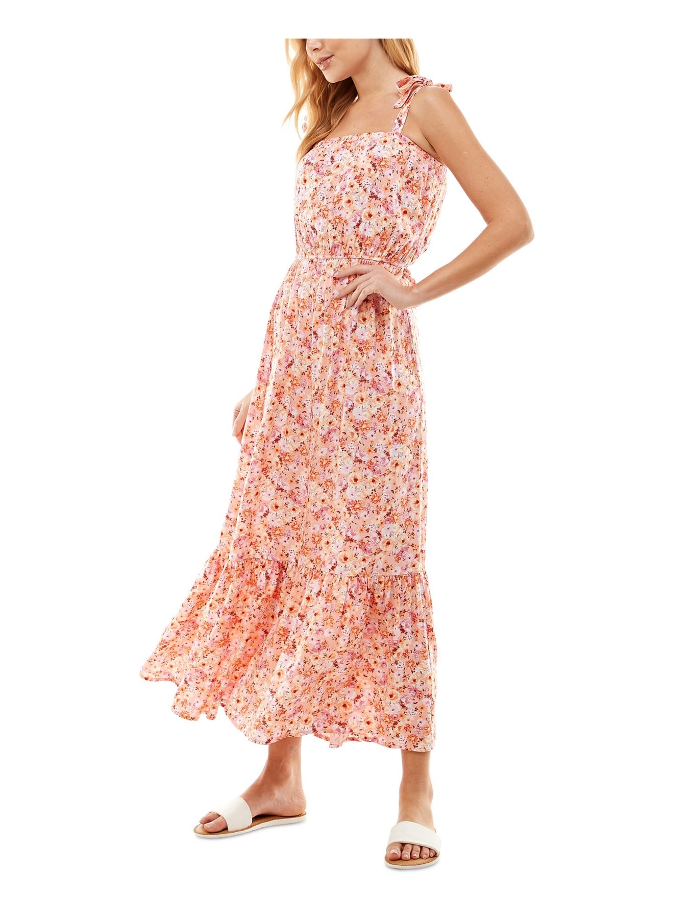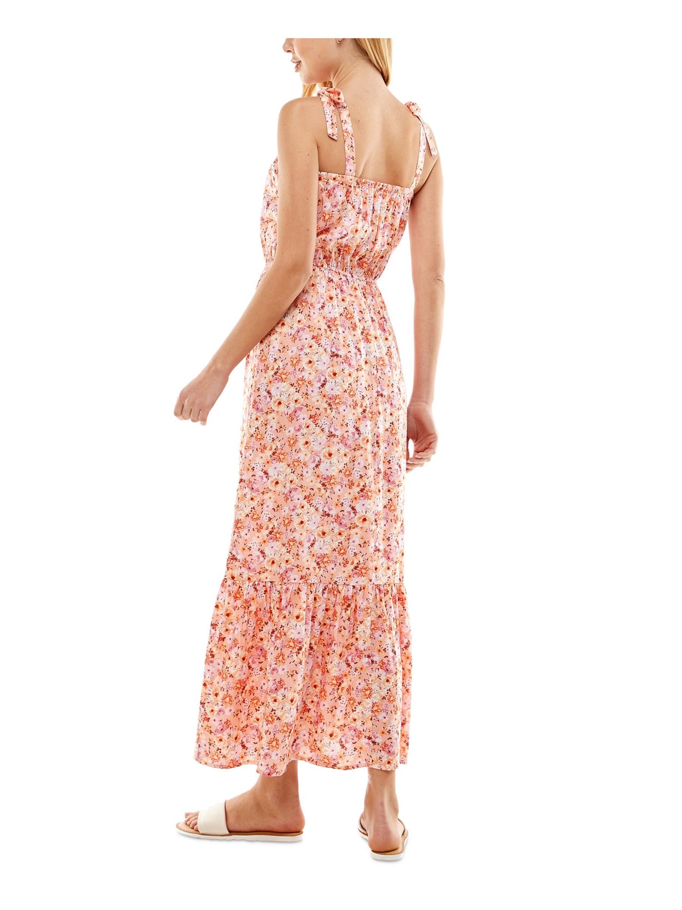 KINGSTON GREY Womens Fit + Flare Maxi Dress Orange Tie Sleeveless Square Neck Floral Juniors S