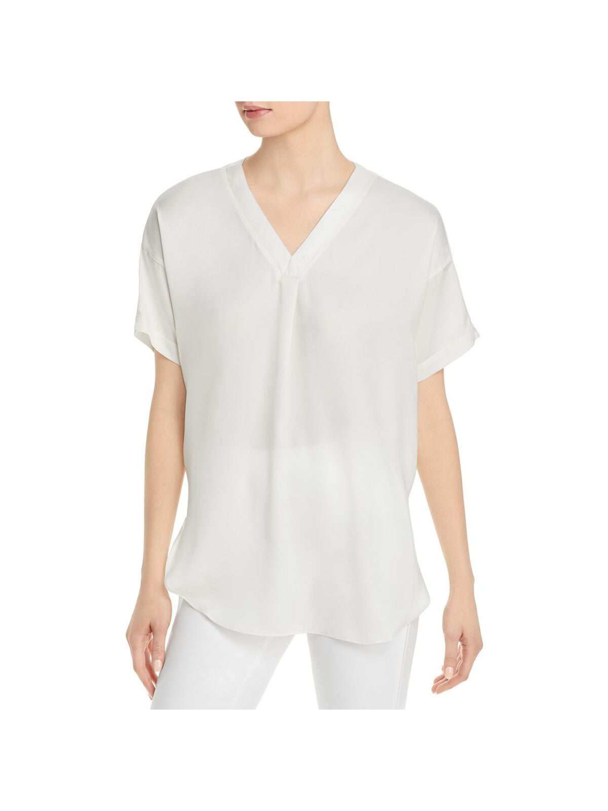 LYSSE Womens Top Ivory Stretch Short Sleeve V Neck Solid XS
