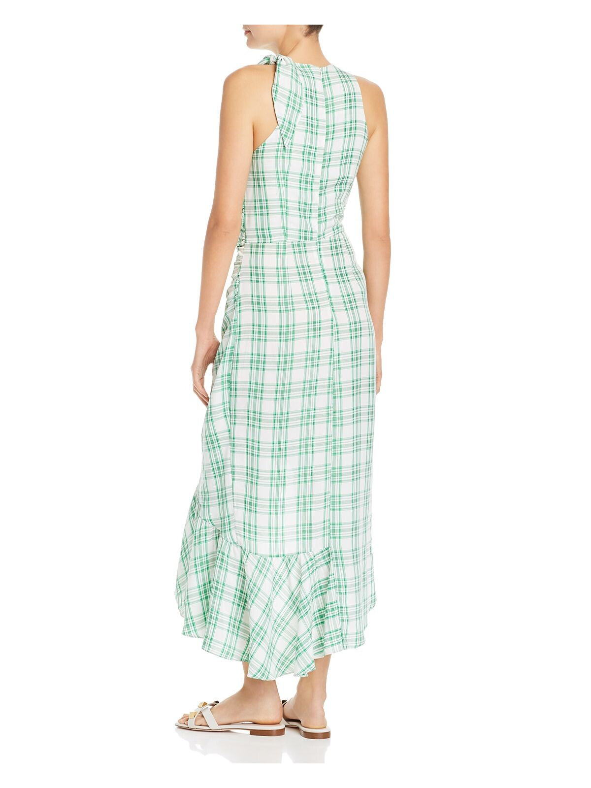 PAPER LONDON Womens Hi-Lo Dress Green Ruffled Jewel Neck Plaid 0