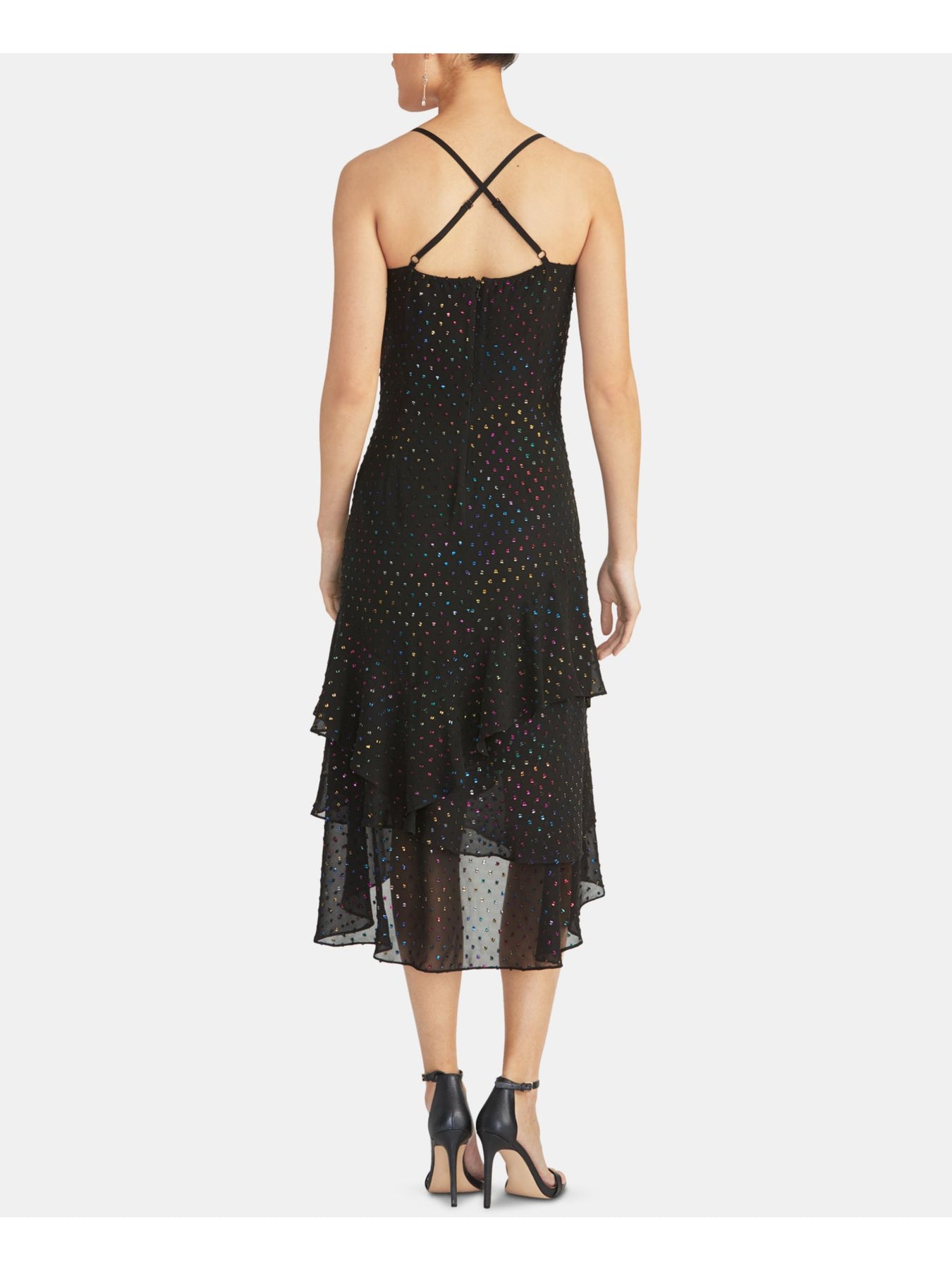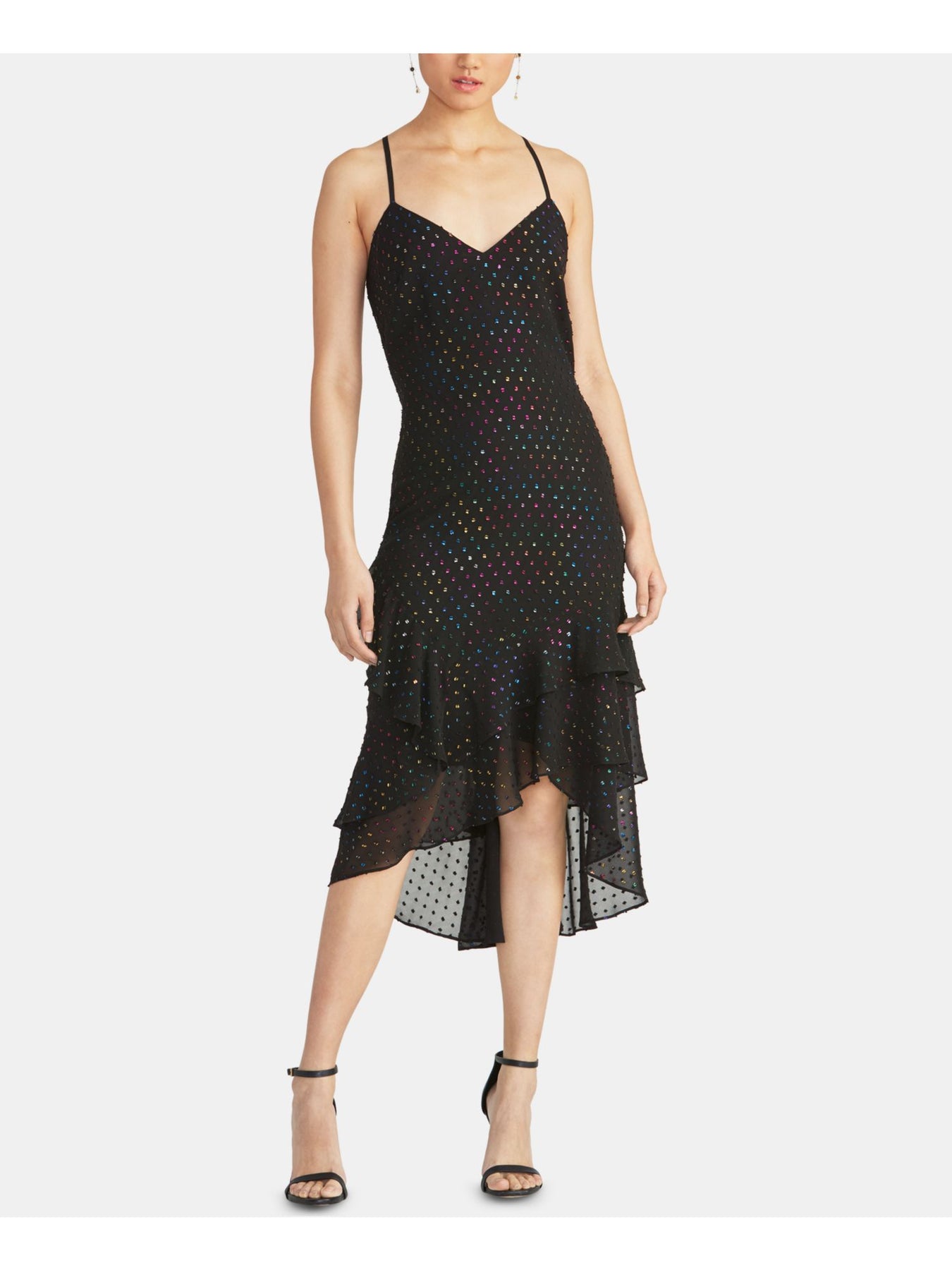 RACHEL ROY Womens Hi-Lo Midi Dress Black Ruffled Spaghetti Strap V Neck Polka Dot S