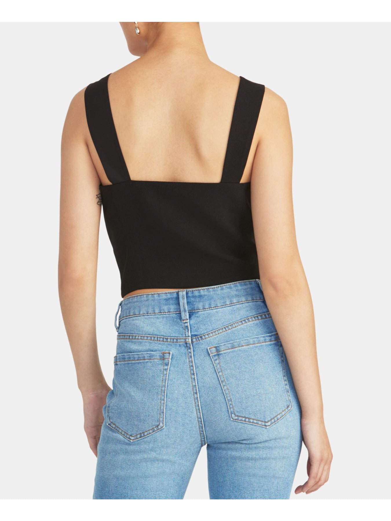 RACHEL ROY Womens Crop Top Black Sleeveless Square Neck S