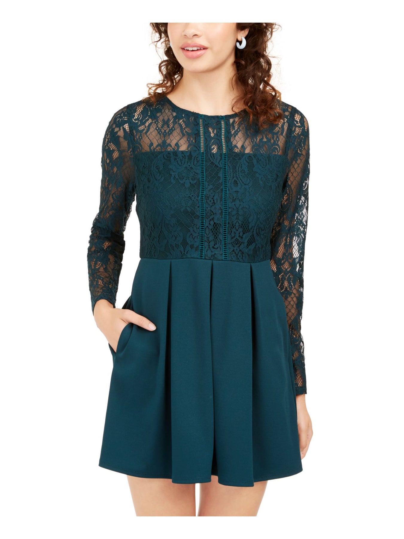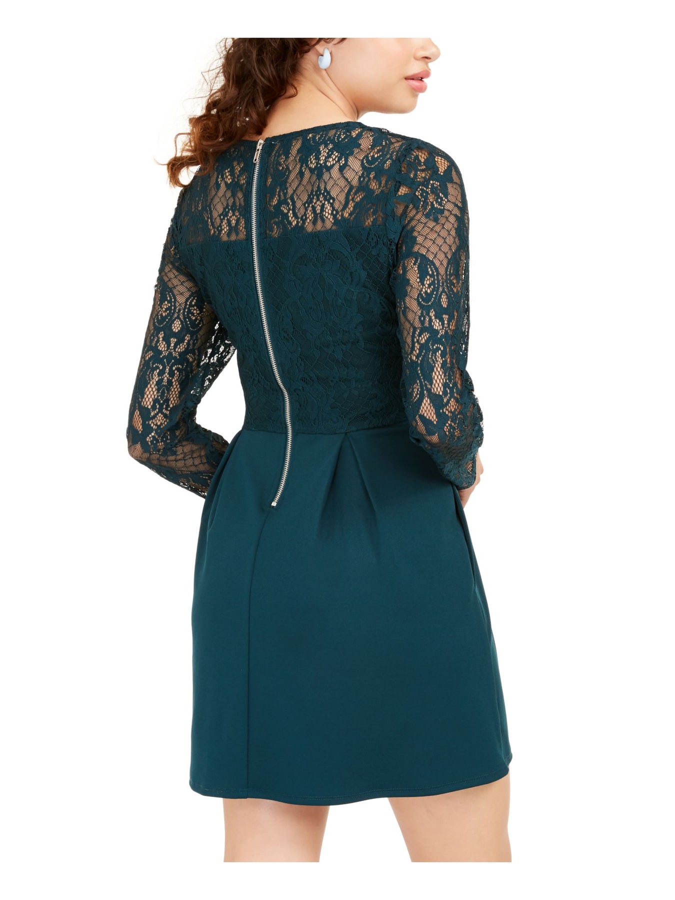 SPEECHLESS Womens Green Lace Zippered Long Sleeve Jewel Neck Mini Party Fit + Flare Dress M