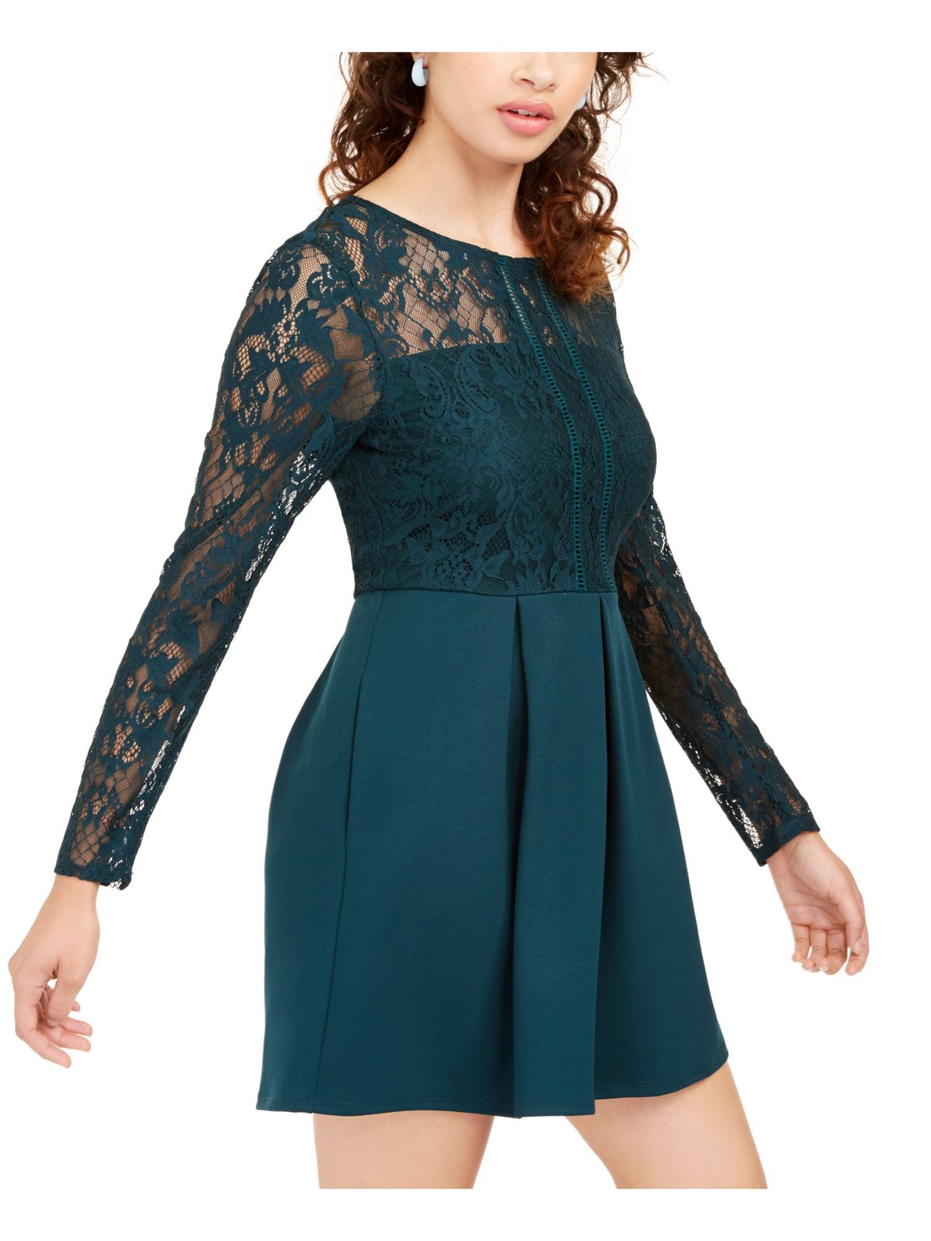 SPEECHLESS Womens Lace Long Sleeve Jewel Neck Mini Party Fit + Flare Dress