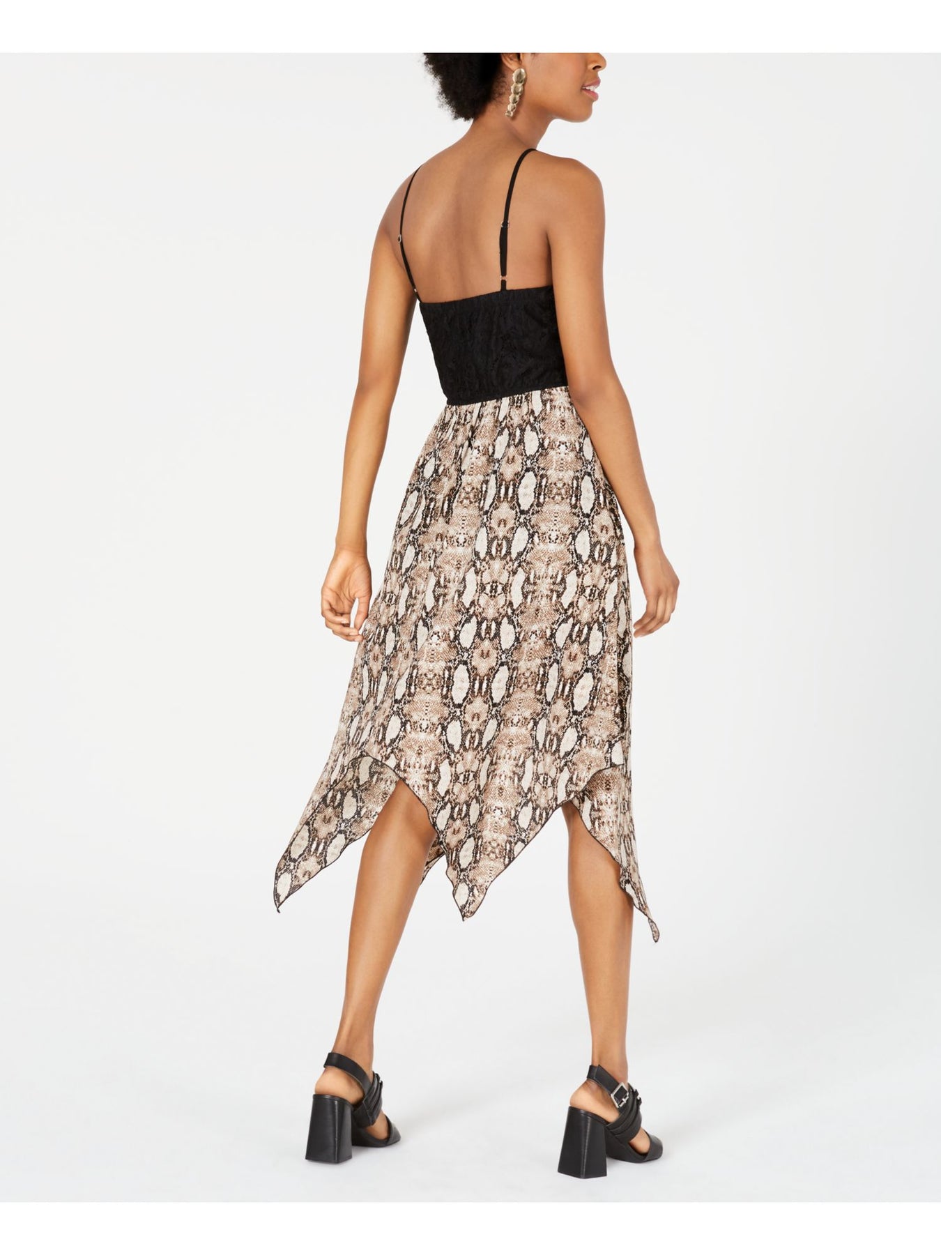 SPEECHLESS Womens Sheath Midi Dress Brown Lace Spaghetti Strap V Neck Printed Juniors M