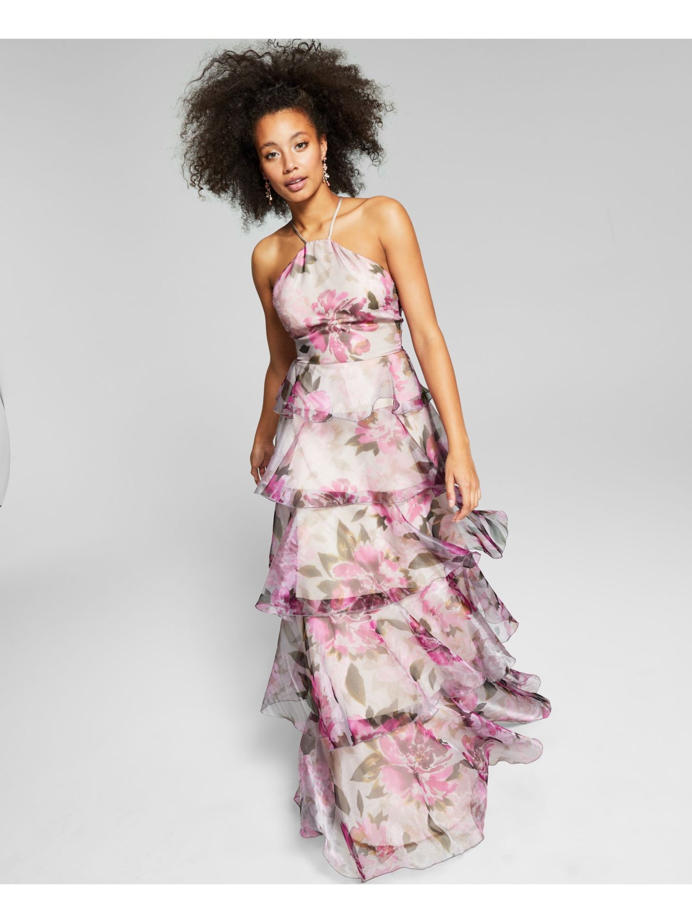 SPEECHLESS Womens Zippered Sheer Tiered Crisscross Back Lined Spaghetti Strap Halter Full-Length Party Empire Waist Dress