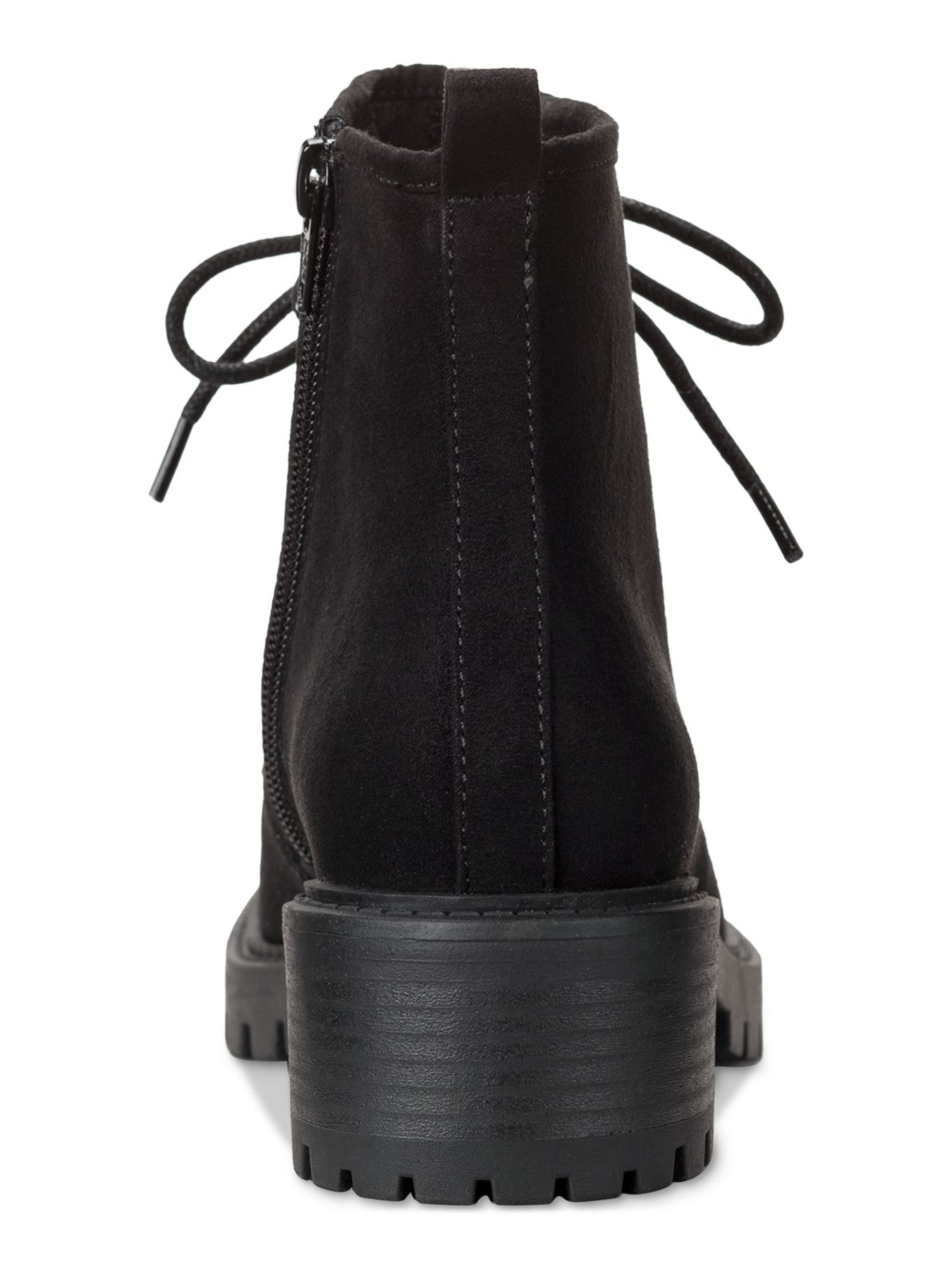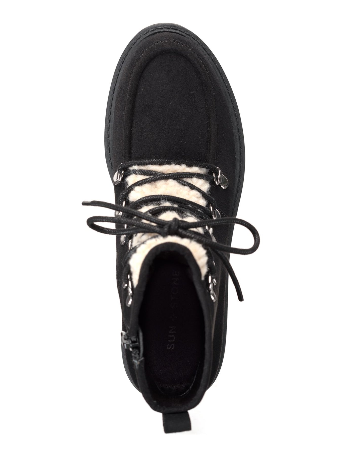 Womens Black Lace Up Apron Toe Padded Faux Shearling Trim Lug Sole Treaded Quiinn Round Toe Zip-Up Winter Boots M